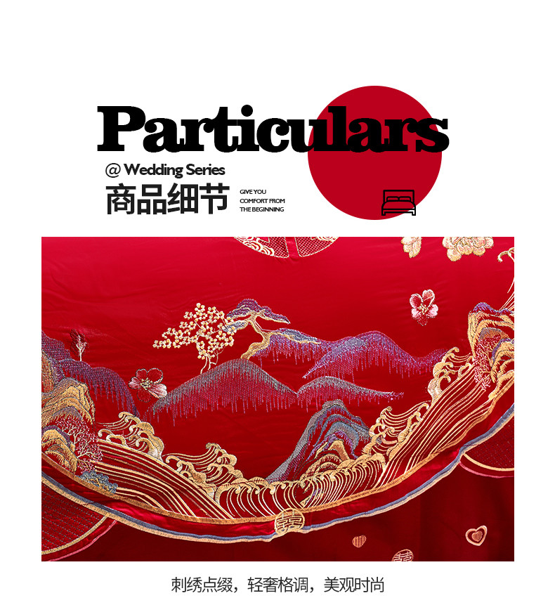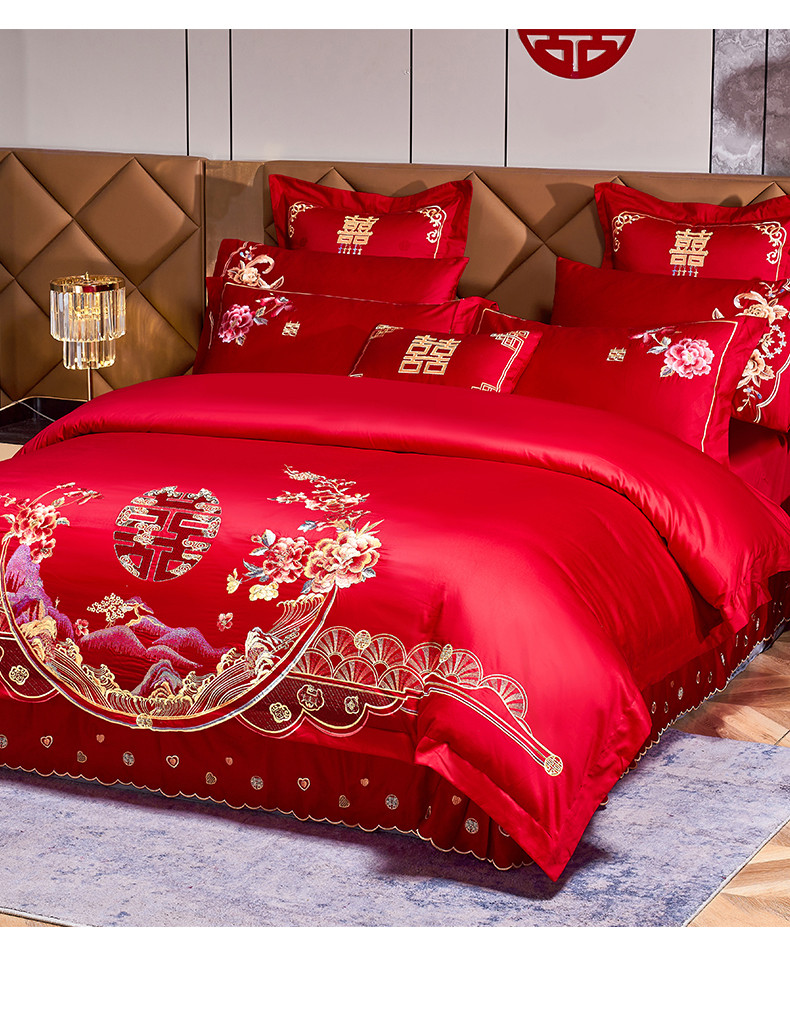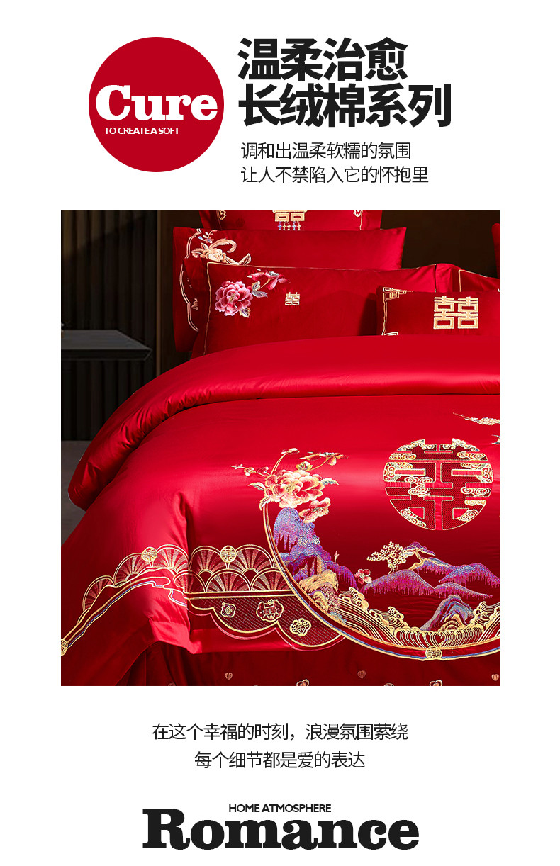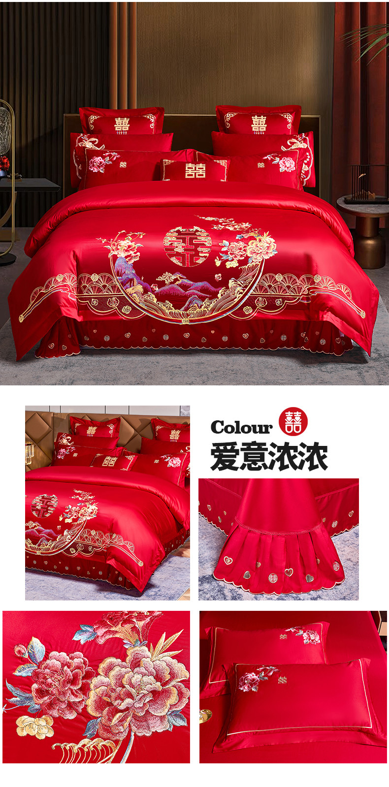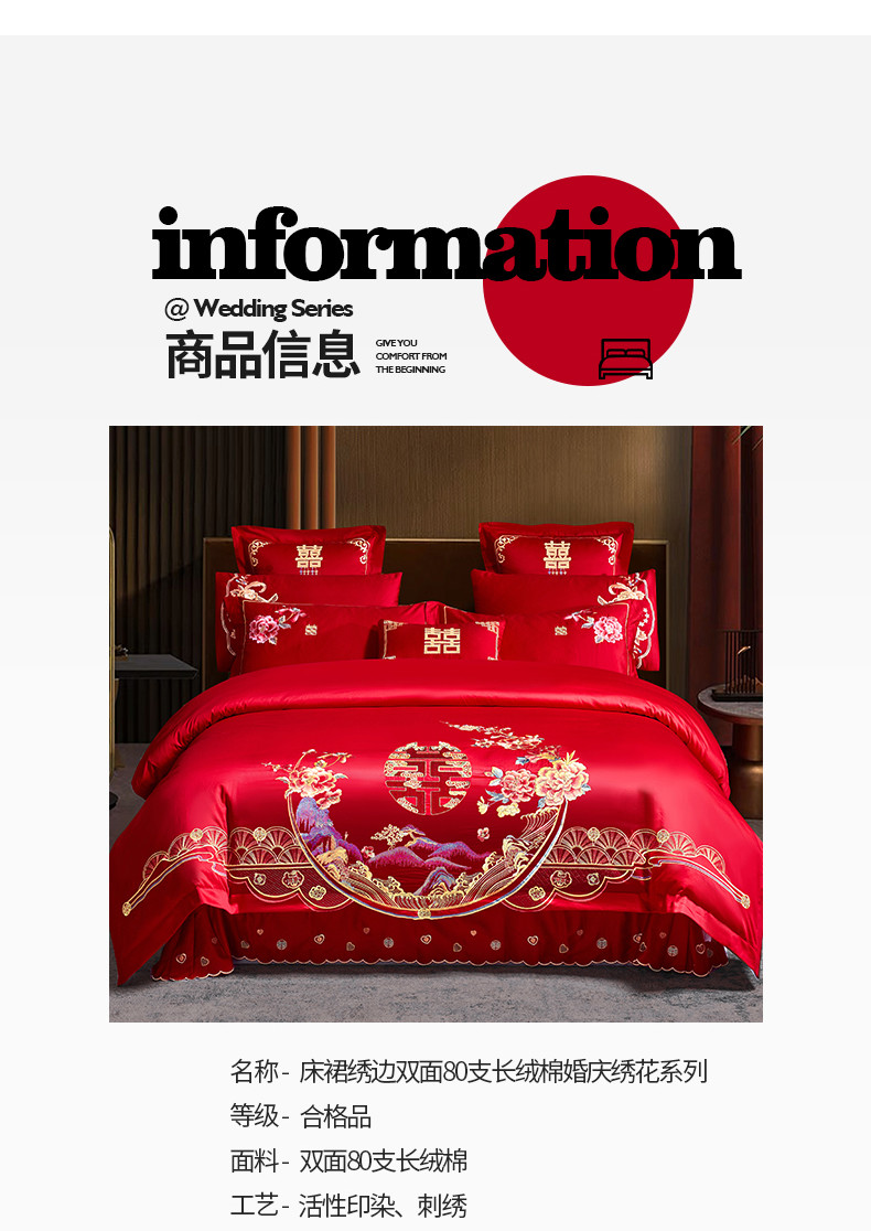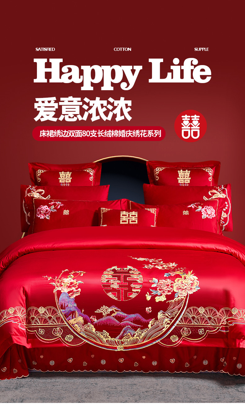 当前位置: 91家纺网 > 商品网购 > 床品套件 > 四件套 > 婚庆四件套 > 千禧 2023新款床裙绣边双面长绒棉婚庆绣花系列四件套 爱意浓浓