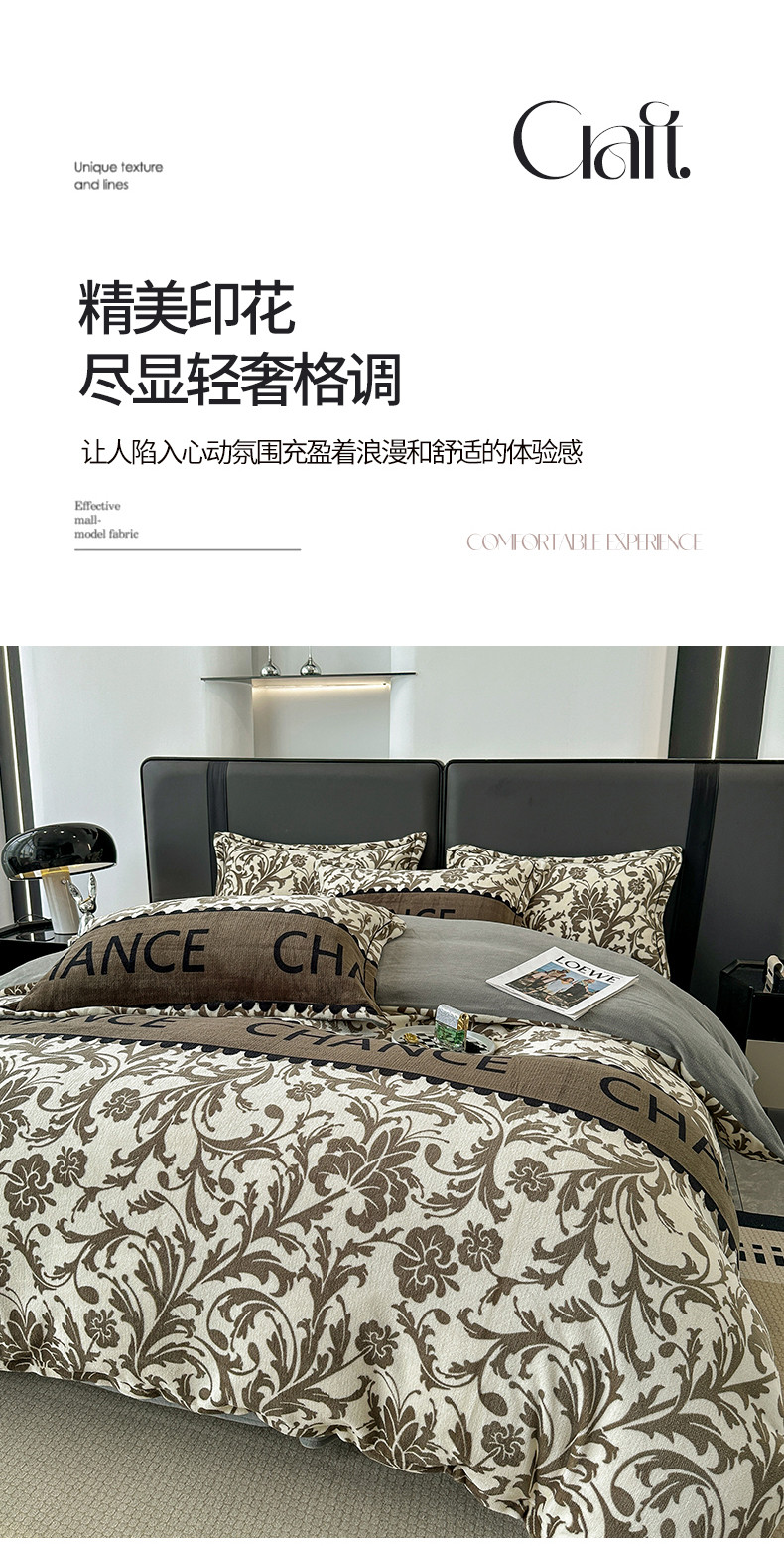 耀达家居 2024新款ins毛巾绣水洗棉四件套 四叶草 咖,四叶草 咖
