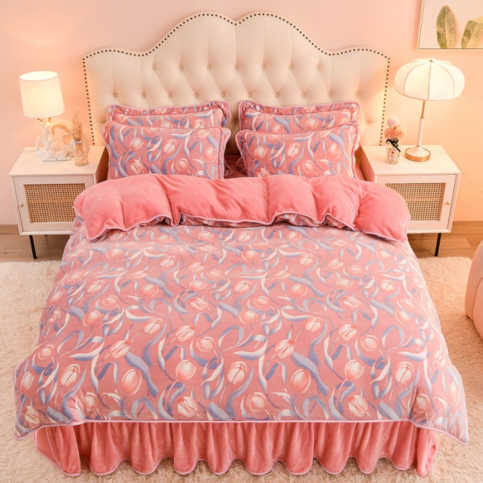 商品名称:凤杰 2025新款高克重7斤加厚印花牛奶绒金貂法莱绒四件套 郁金香