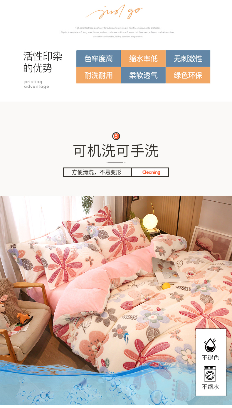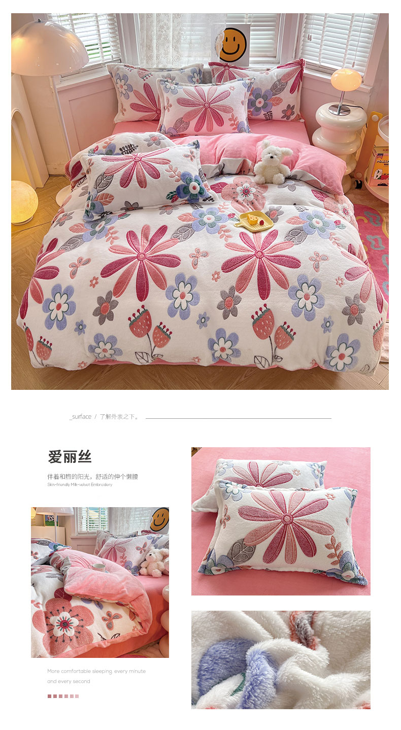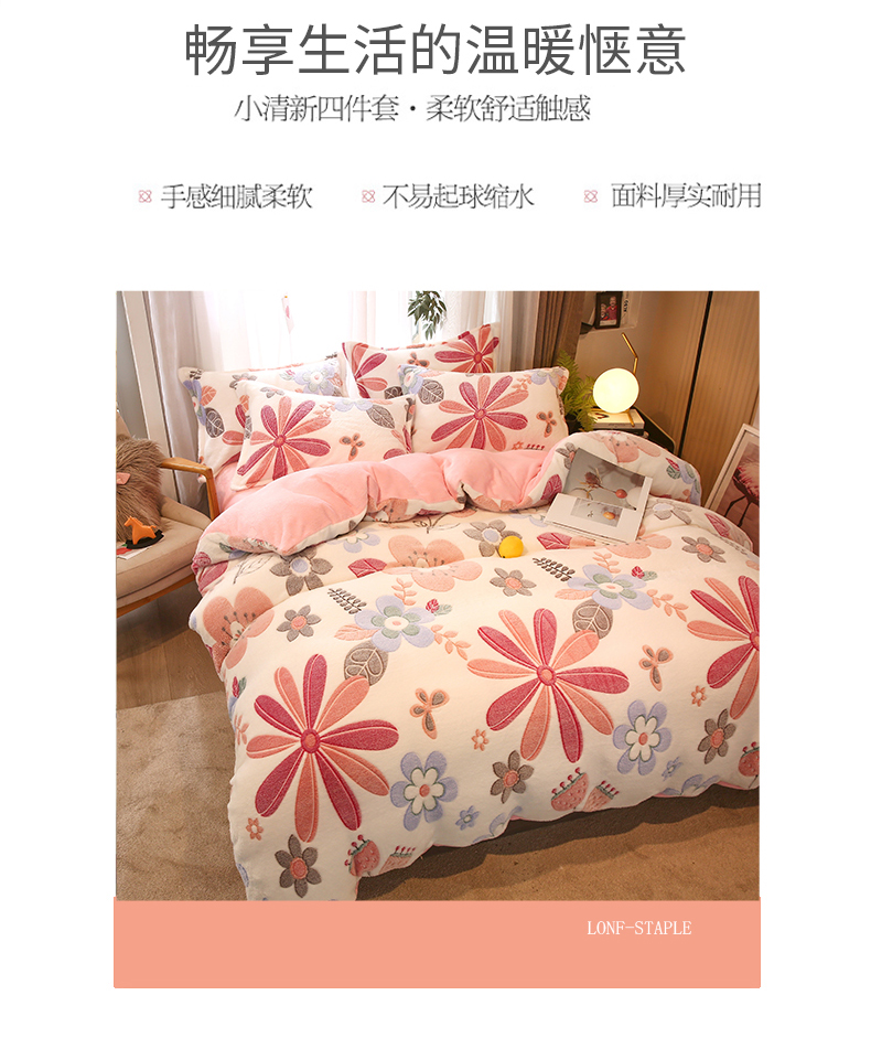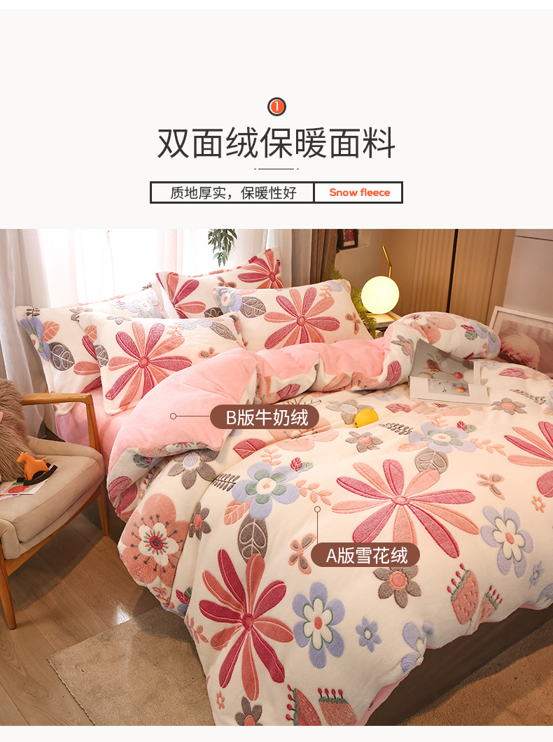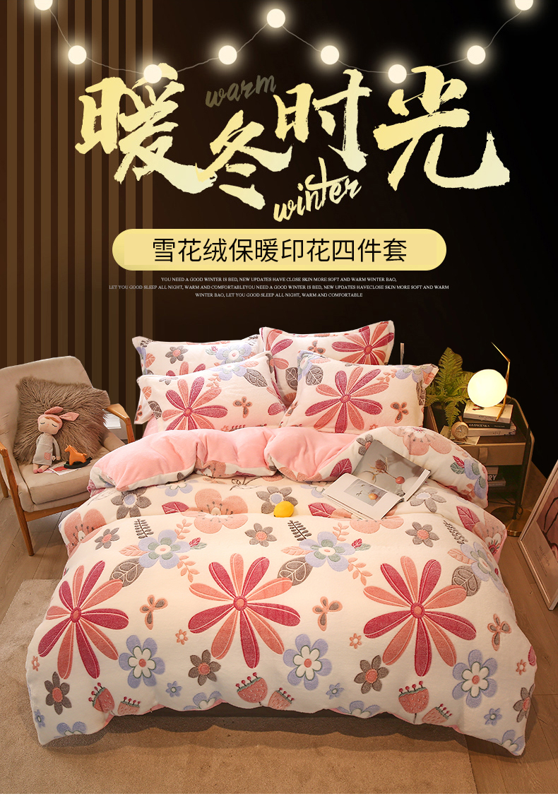 (总)梓瑄家居2023新款雪花绒四件套牛奶绒印花被套床单枕套