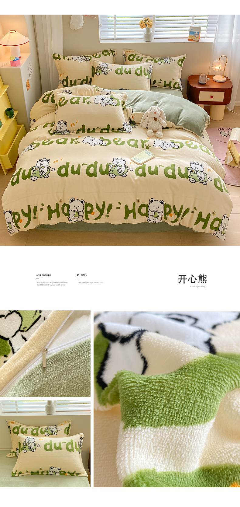 当前位置: 91家纺网 > 商品网购 > 床品套件 > 四件套 > 牛奶绒四件套 > 梦之岛 2023新款牛奶绒加厚小清新印花保暖四件套 开心熊