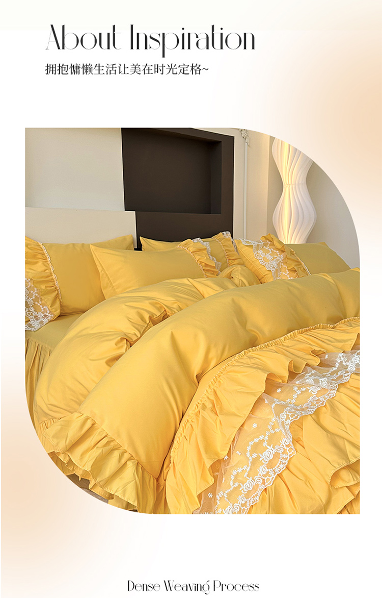 当前位置: 91家纺网 > 商品网购 > 床品套件 > 四件套 > 磨毛活性四件套 > 言熙居 2023新款多巴胺加厚磨毛韩版床裙小清新风四件套 多巴胺-黄