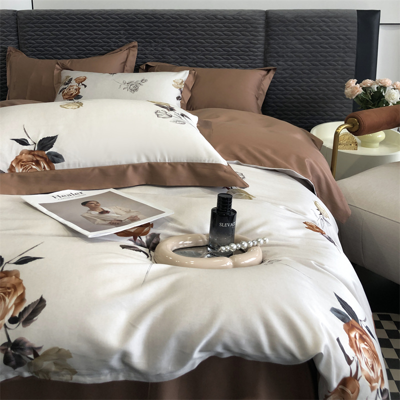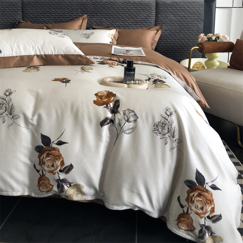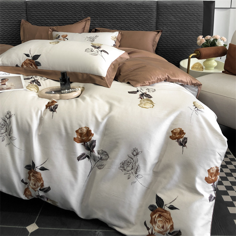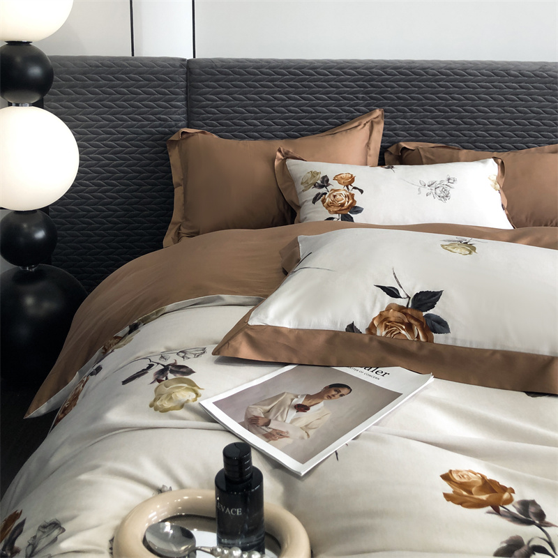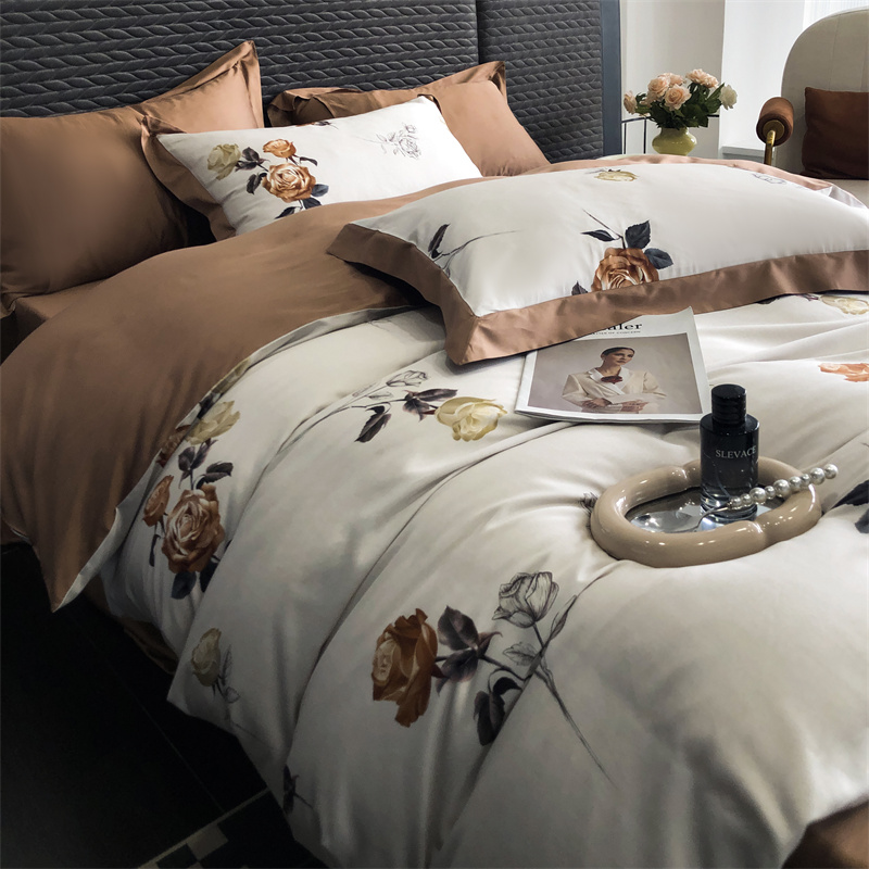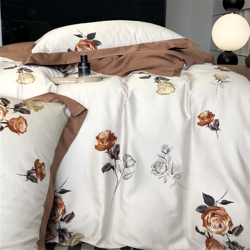 (总)时亿 2023新款100支长绒棉四件套苍兰之约,苍兰之约-橙,苍兰之约-绿