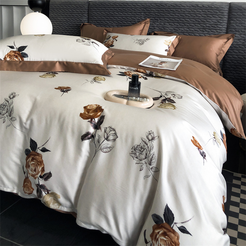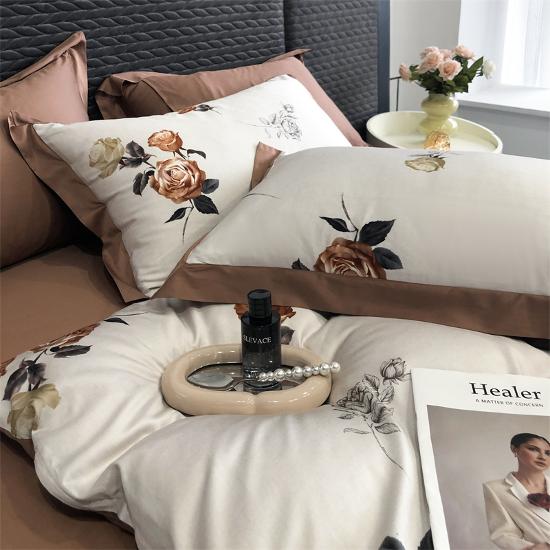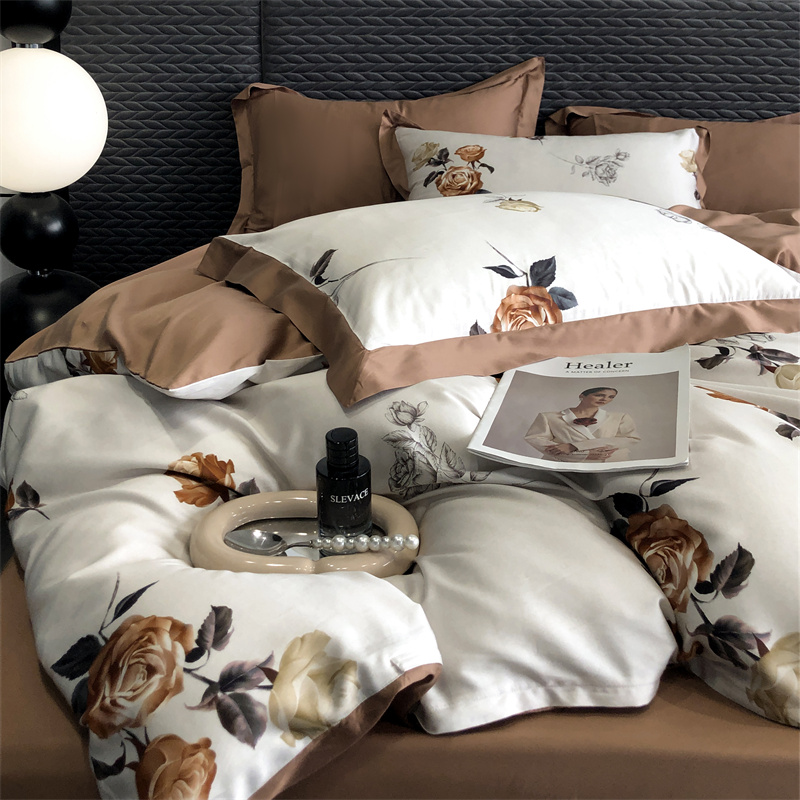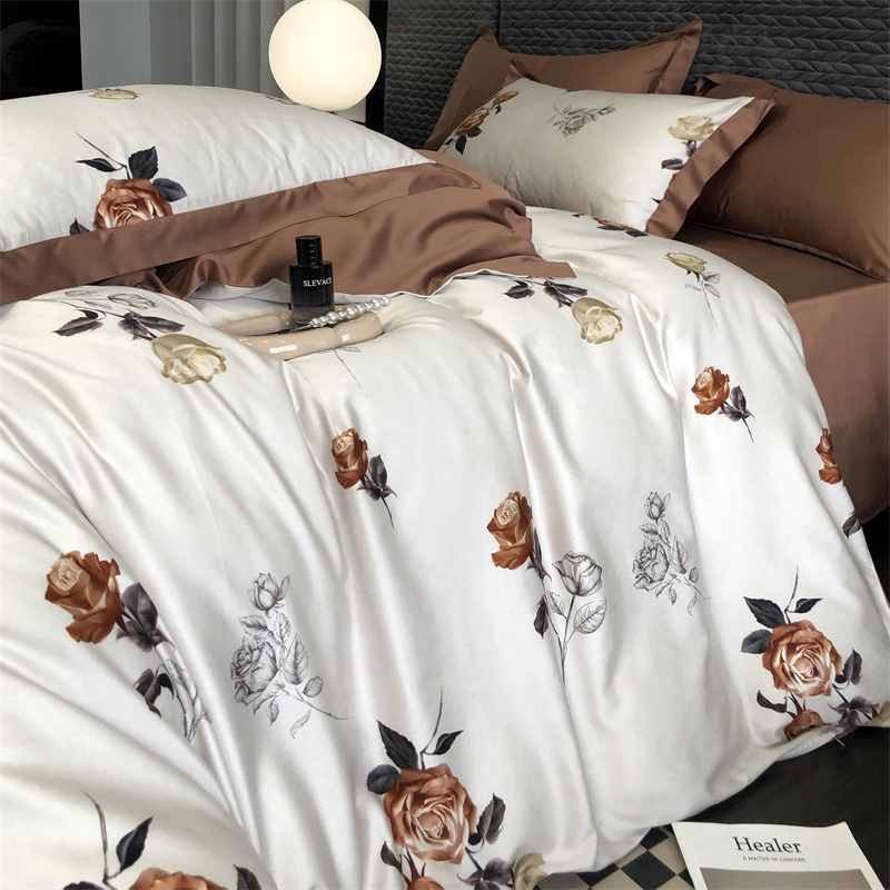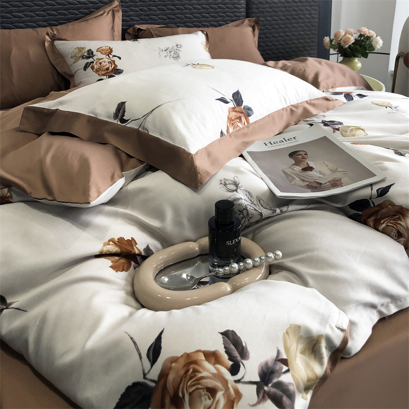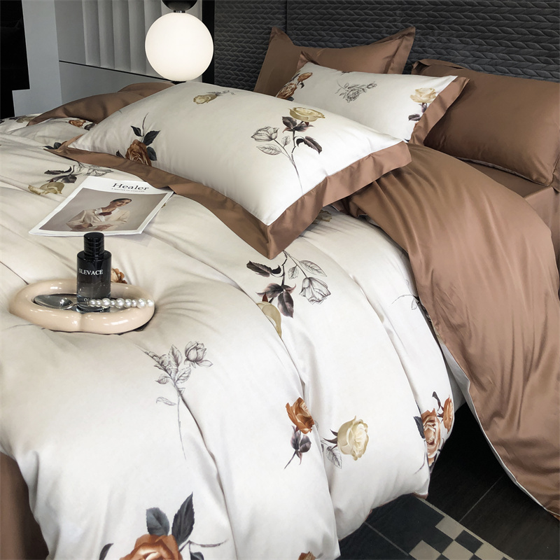 (总)时亿 2023新款100支长绒棉四件套苍兰之约,苍兰之约-橙,苍兰之约-绿