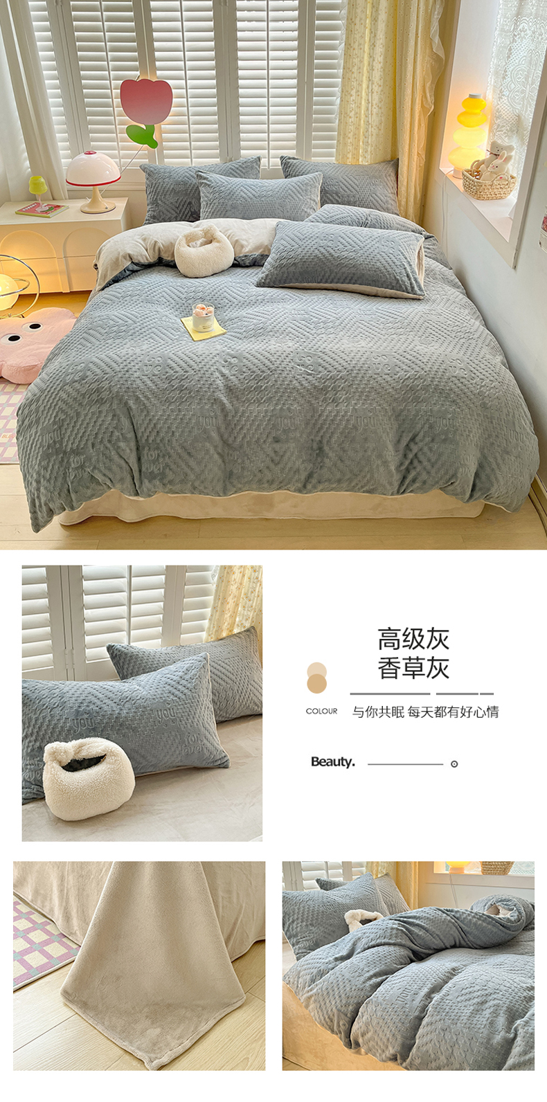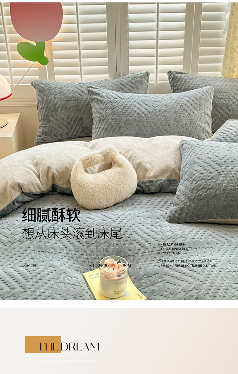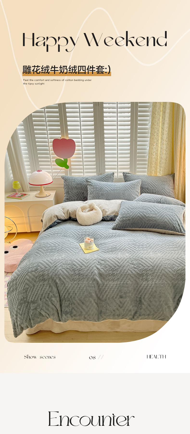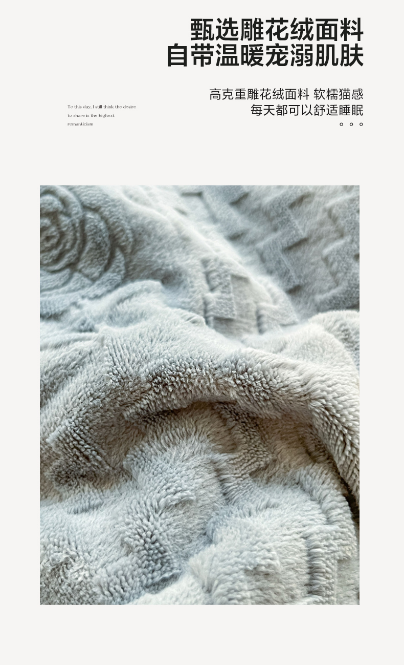 当前位置: 91家纺网 > 商品网购 > 床品套件 > 四件套 > 雕花绒四件套 > 古吉梦 2023新款雕花绒四件套-简爱 高级灰+香草灰