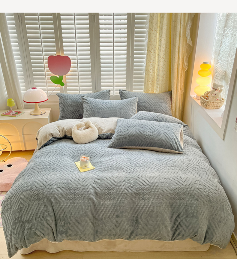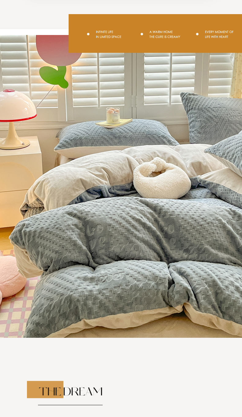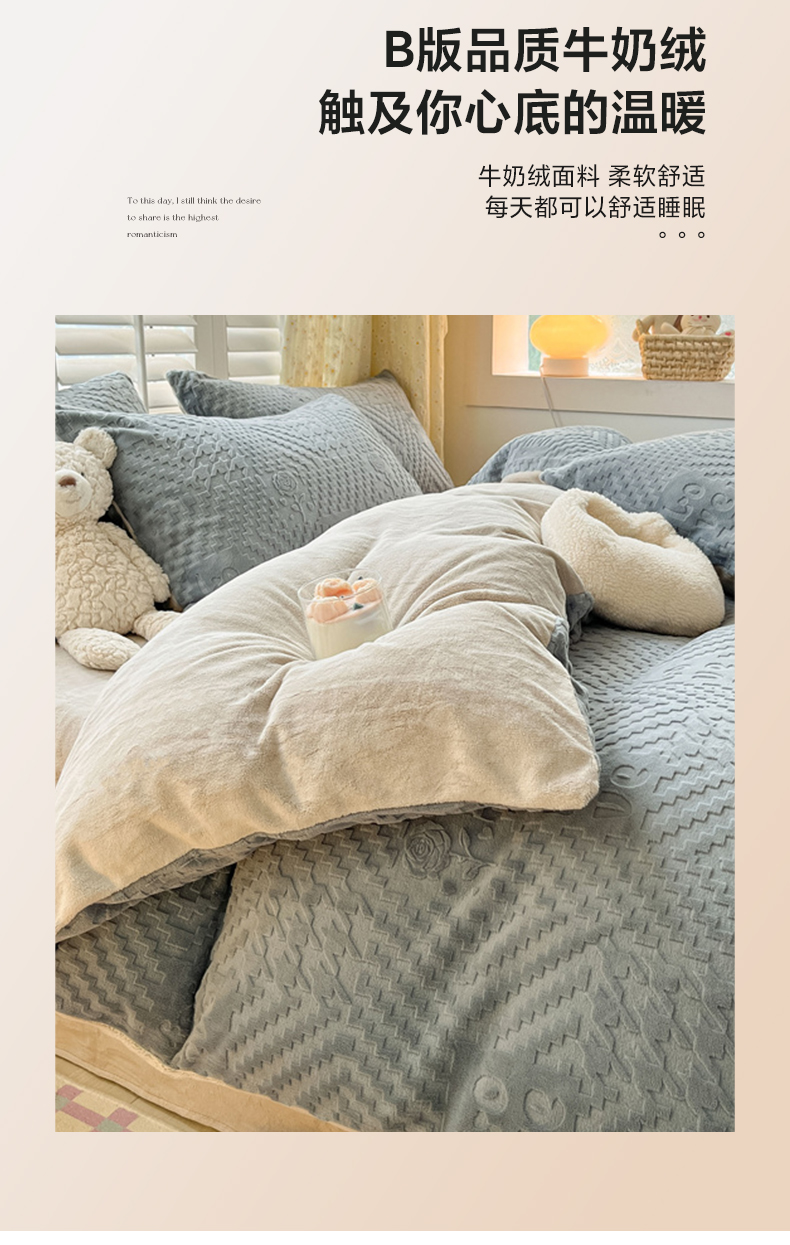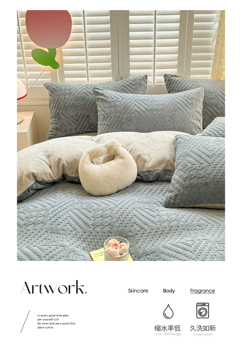 当前位置: 91家纺网 > 商品网购 > 床品套件 > 四件套 > 雕花绒四件套 > 古吉梦 2023新款雕花绒四件套-简爱 高级灰+香草灰