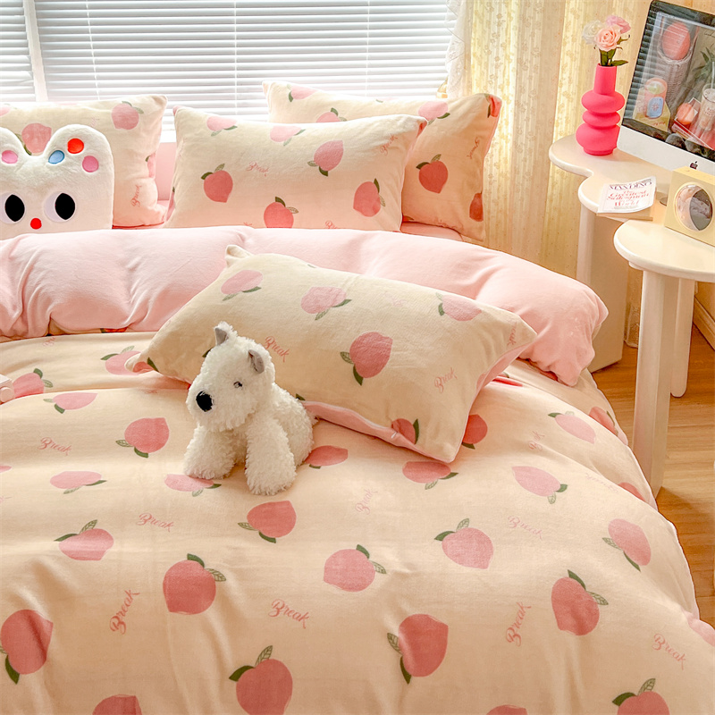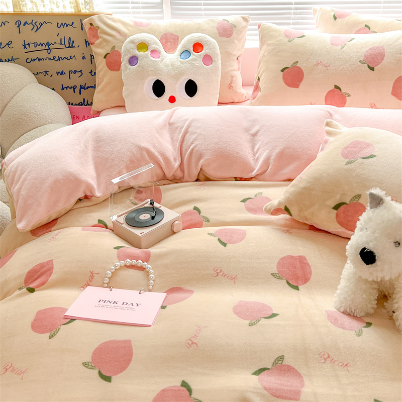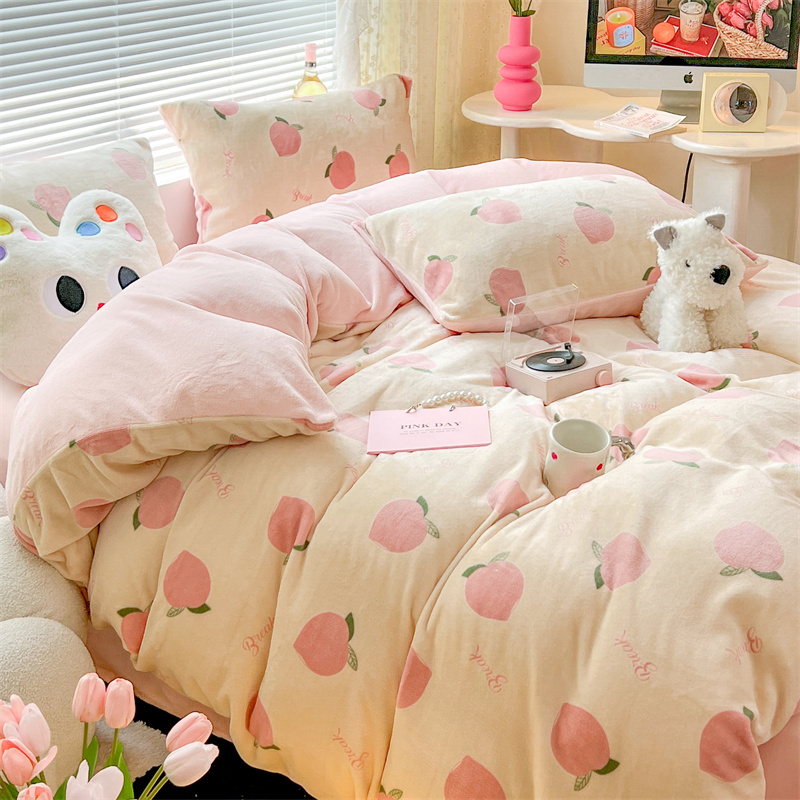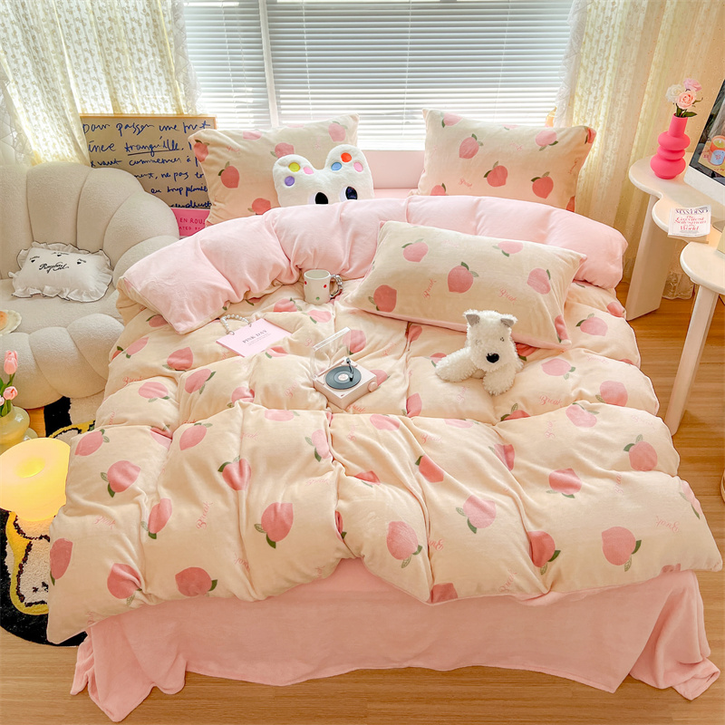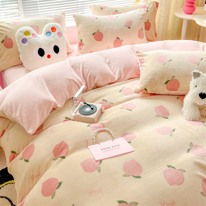 顾里家纺 新款ins少女保暖牛奶绒四件套第二批 水蜜桃