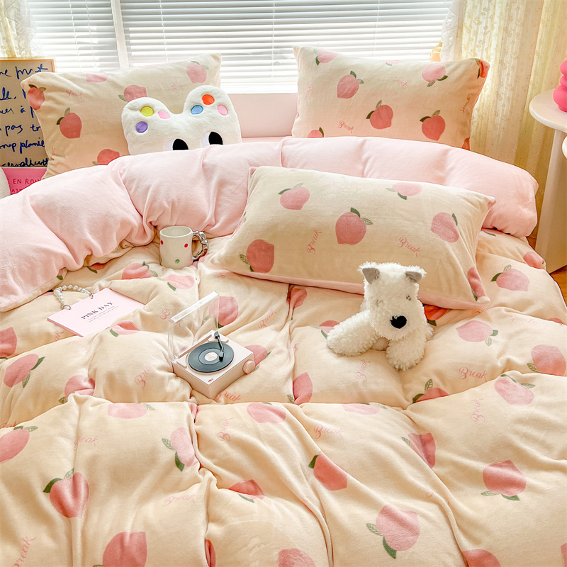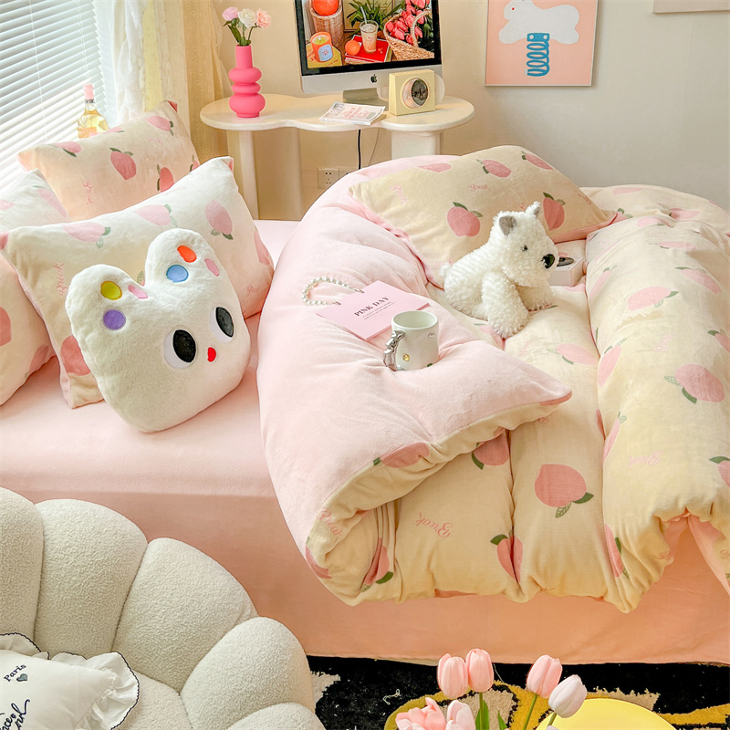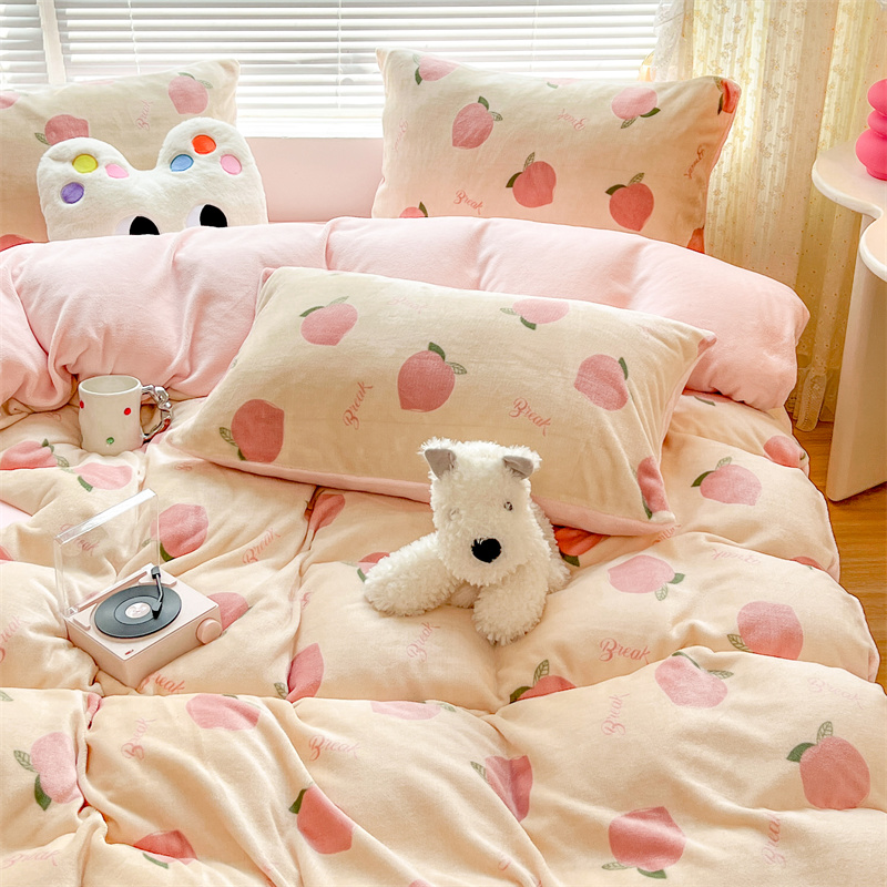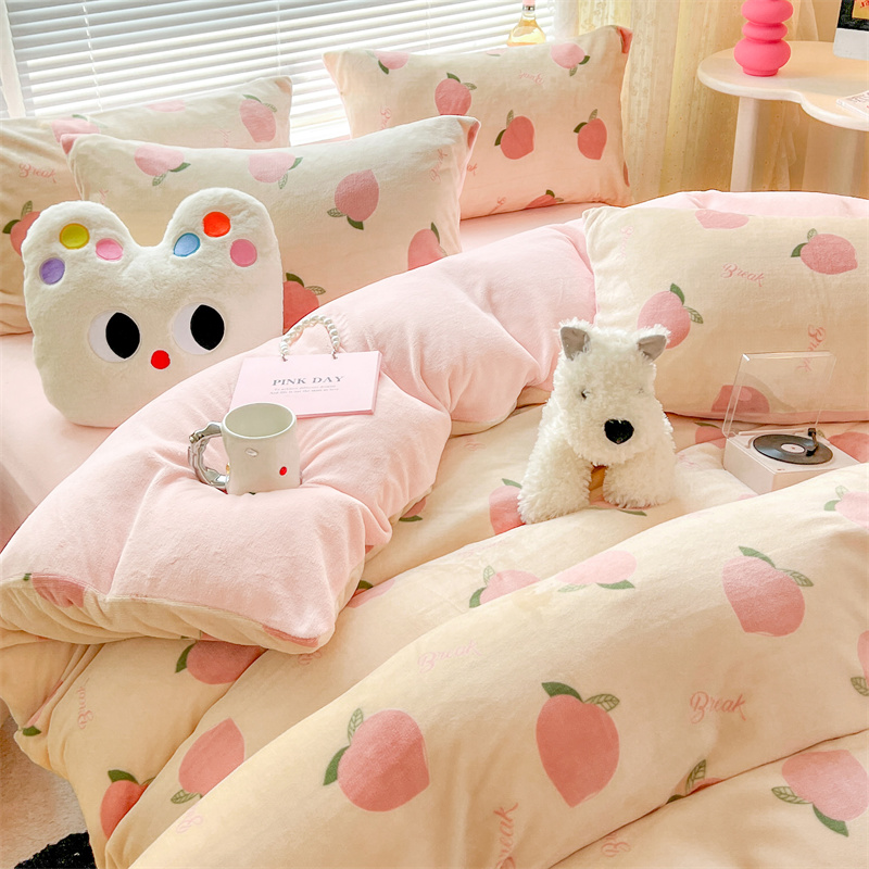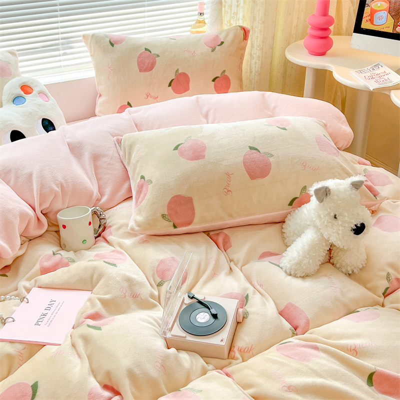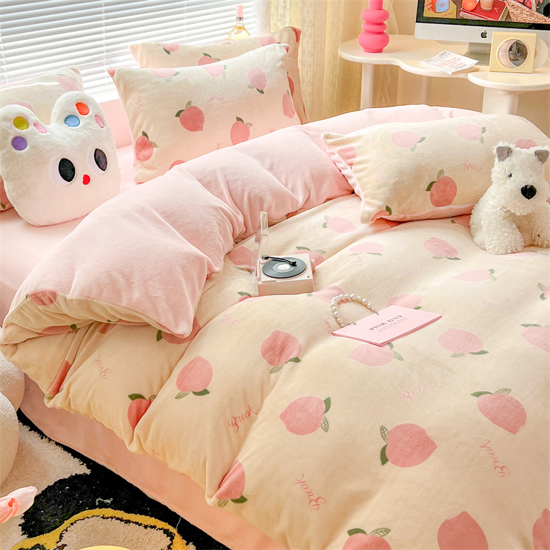 顾里家纺 新款ins少女保暖牛奶绒四件套第二批 水蜜桃