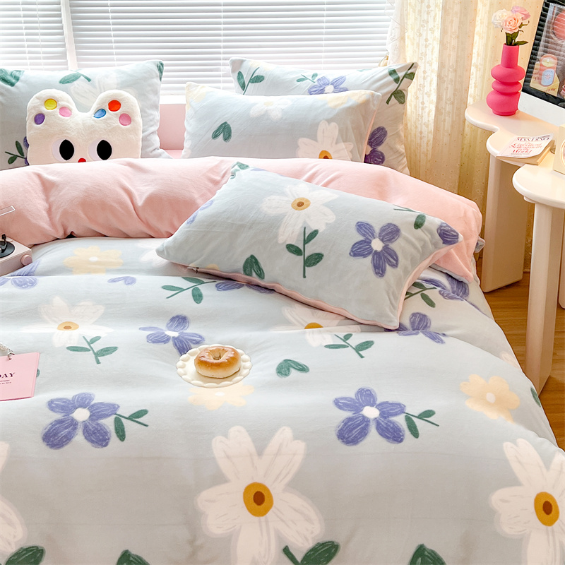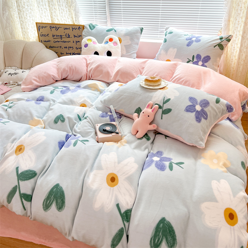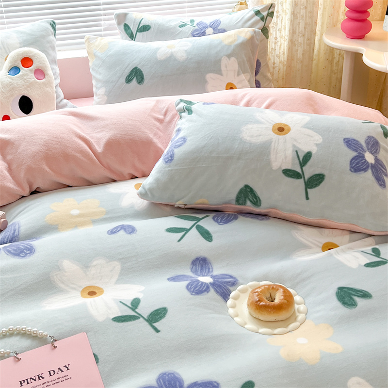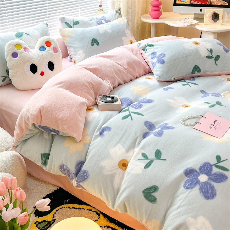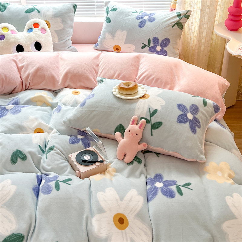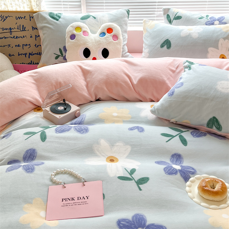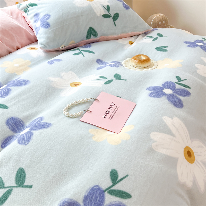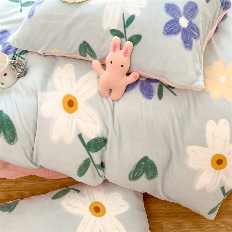顾里家纺 新款ins少女保暖牛奶绒四件套第二批 蓝底花朵