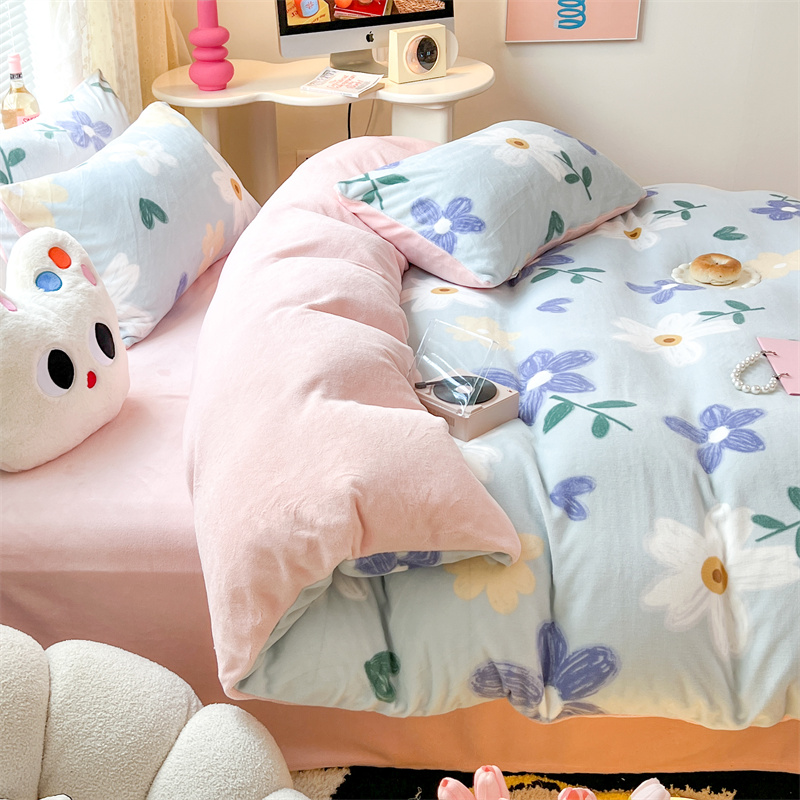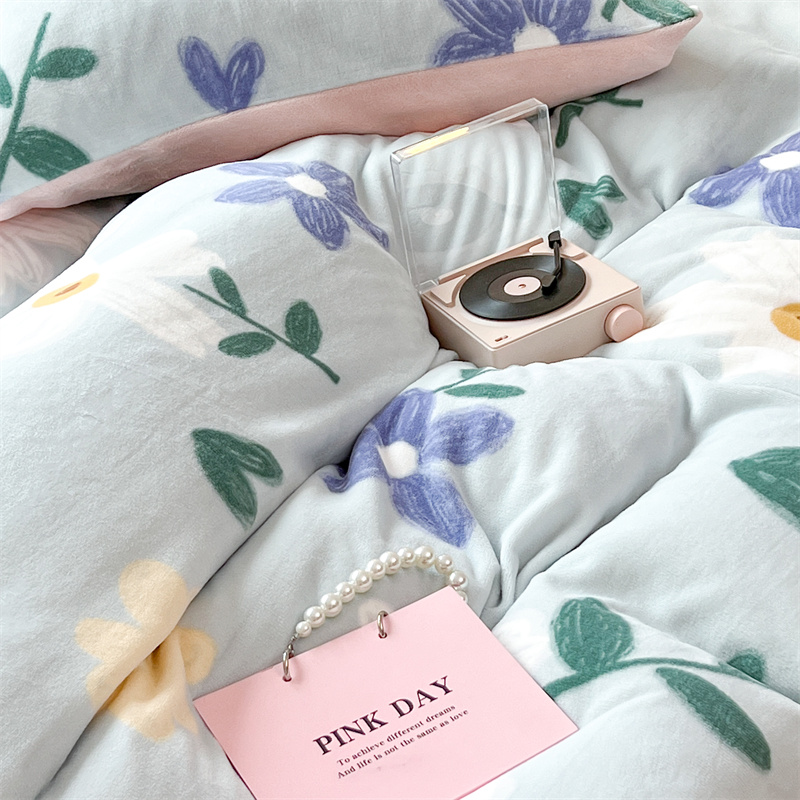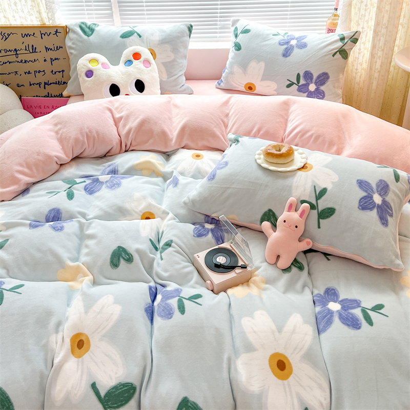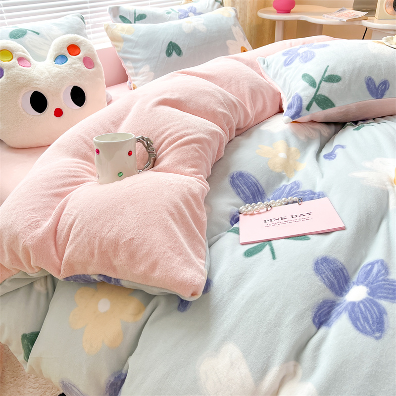 商品名称:顾里家纺 新款ins少女保暖牛奶绒四件套第二批 蓝底花朵