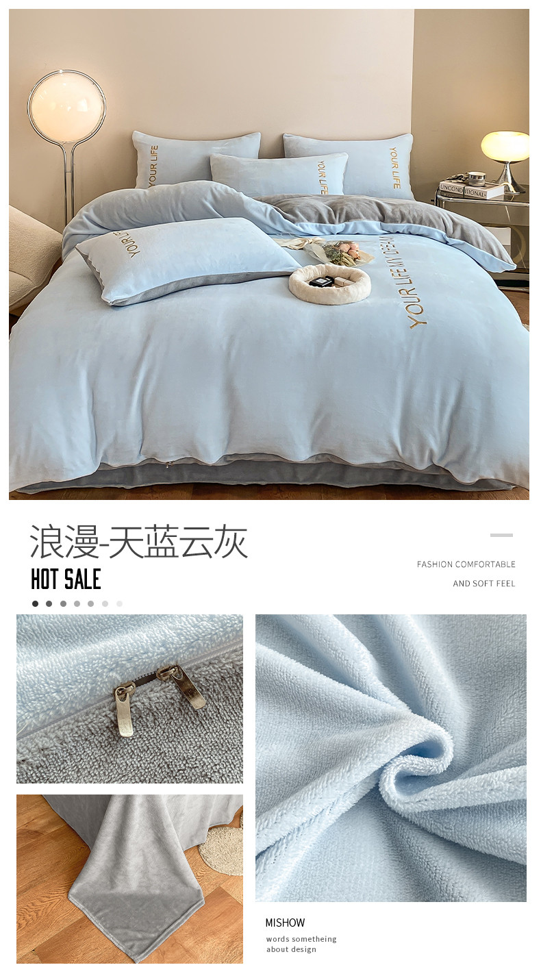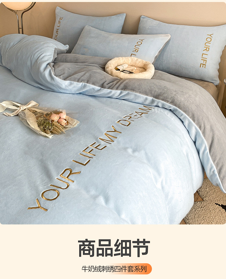 商品名称:义博 2025新款牛奶绒刺绣四件套-浪漫系列 浪漫-天蓝云灰