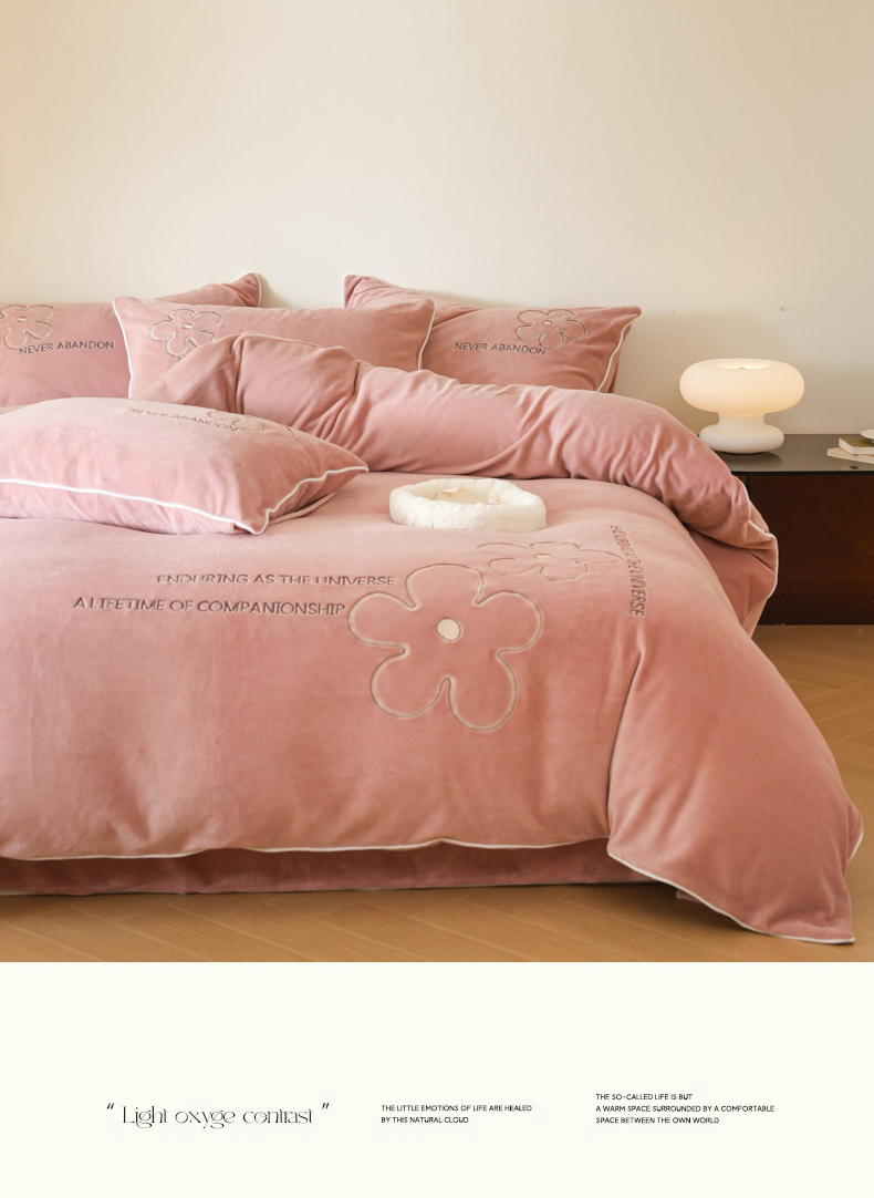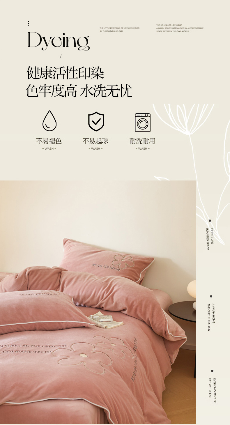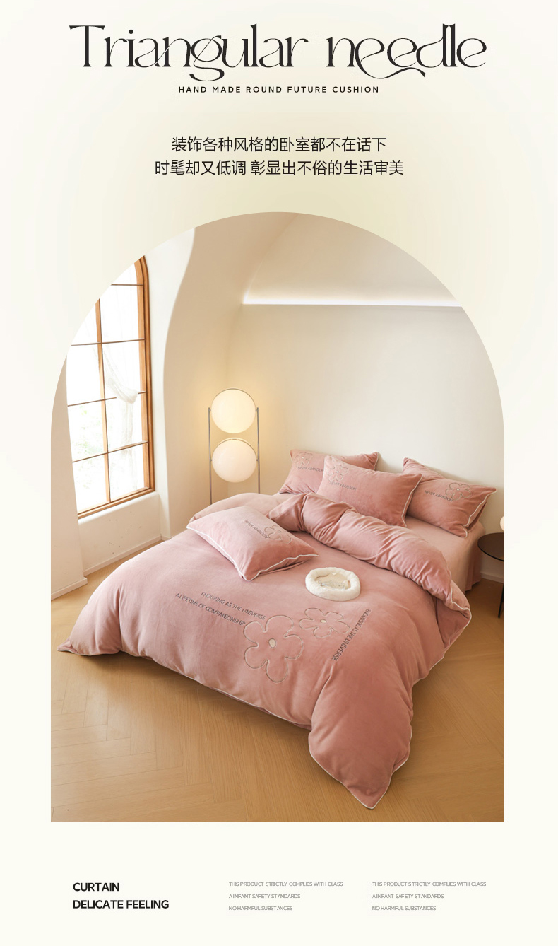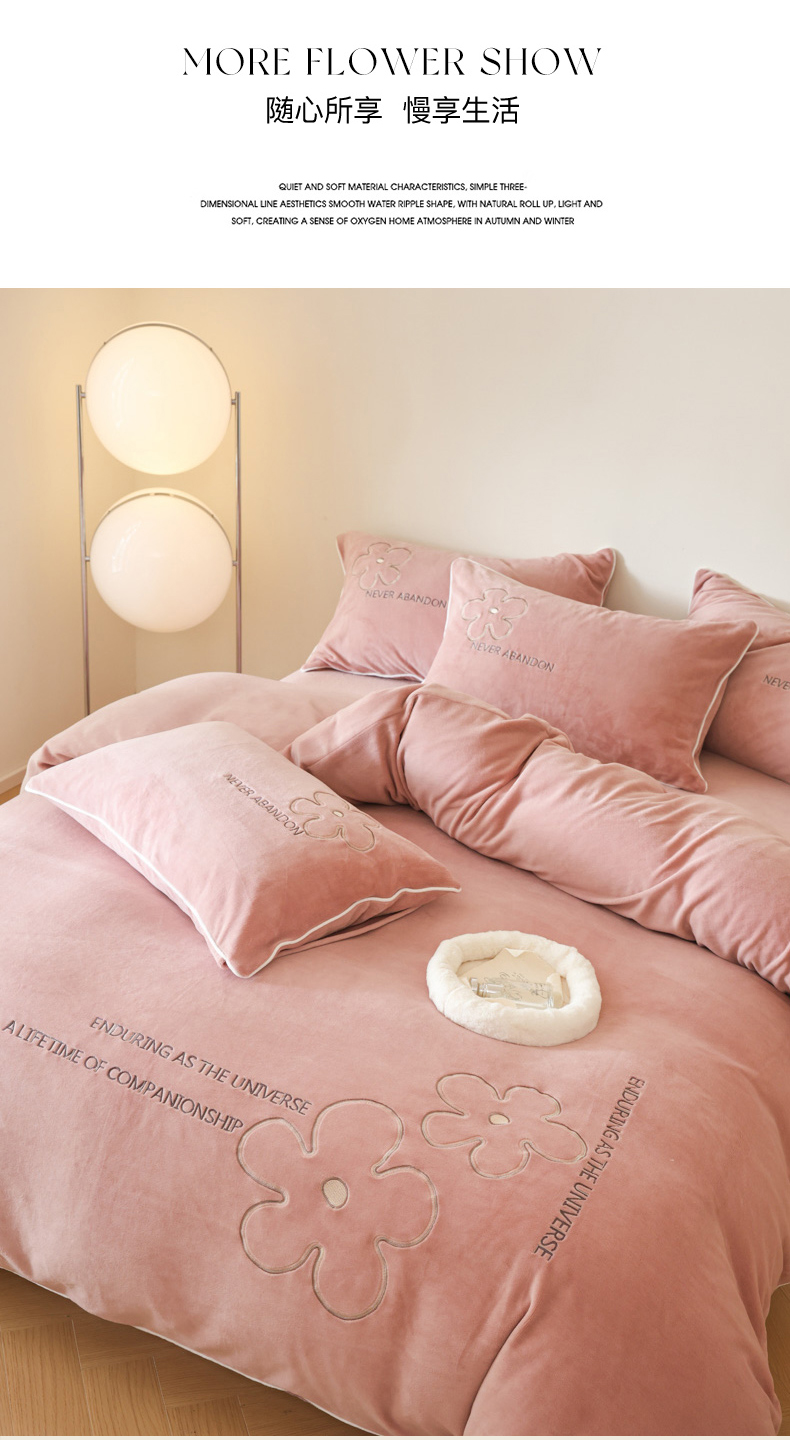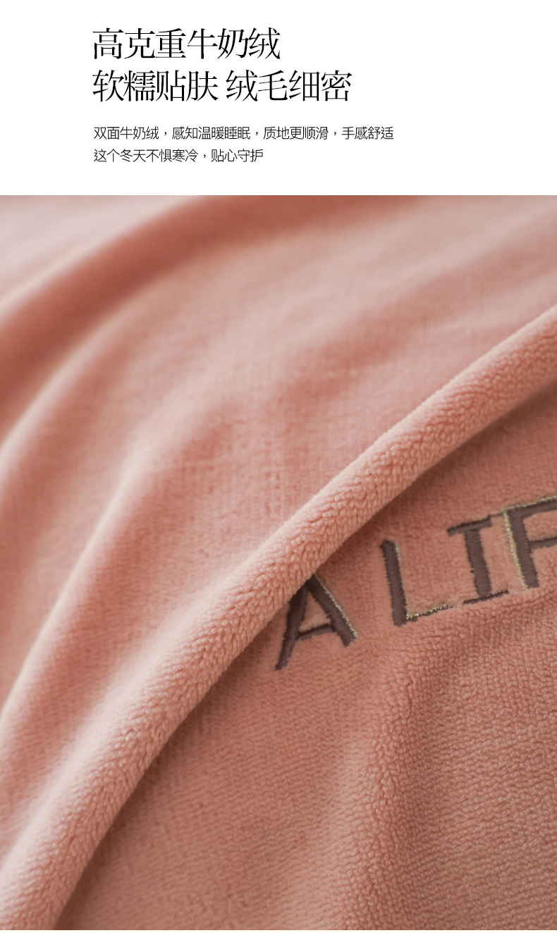 万盛家纺 2025新款牛奶绒简约绣花四件套 豆沙色