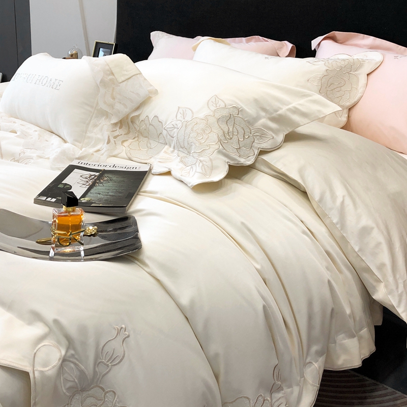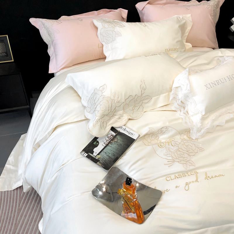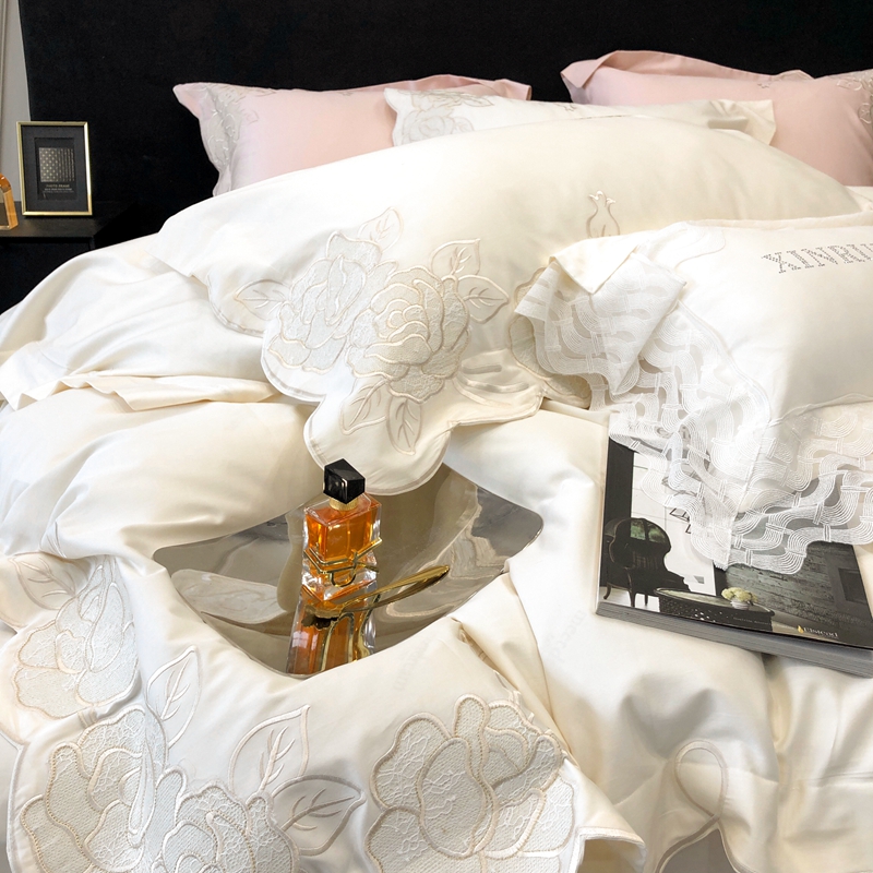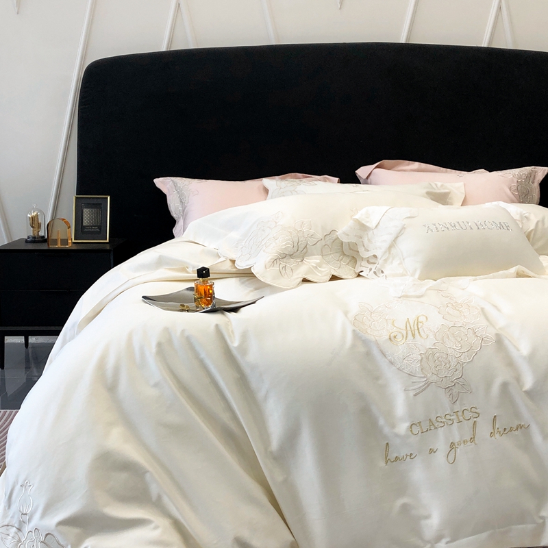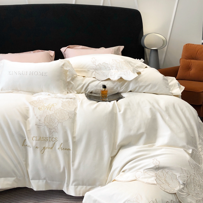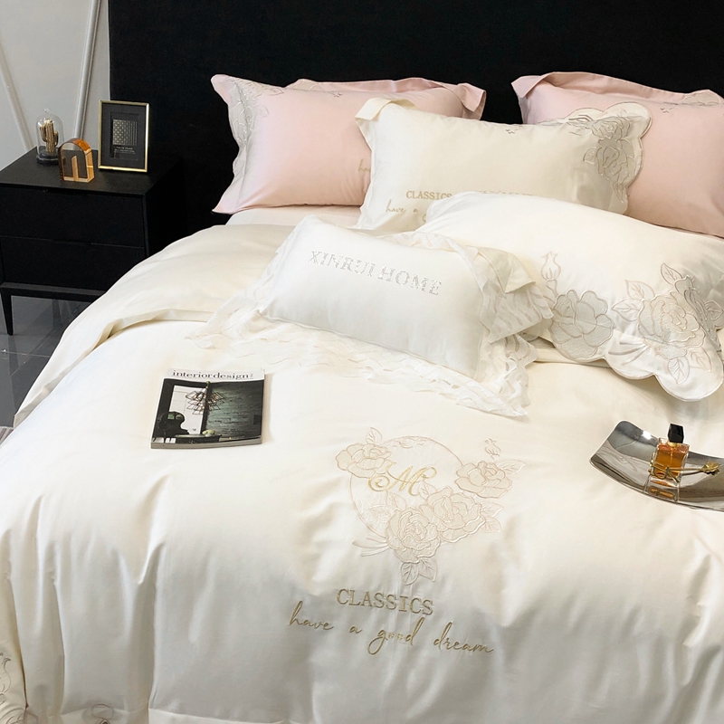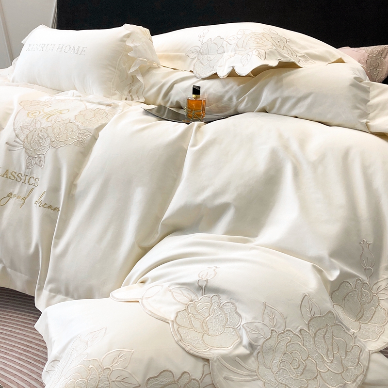 馨蕊家居 2023新款100支CR工艺全棉四件套-玛利娅 玛丽娅-月光白