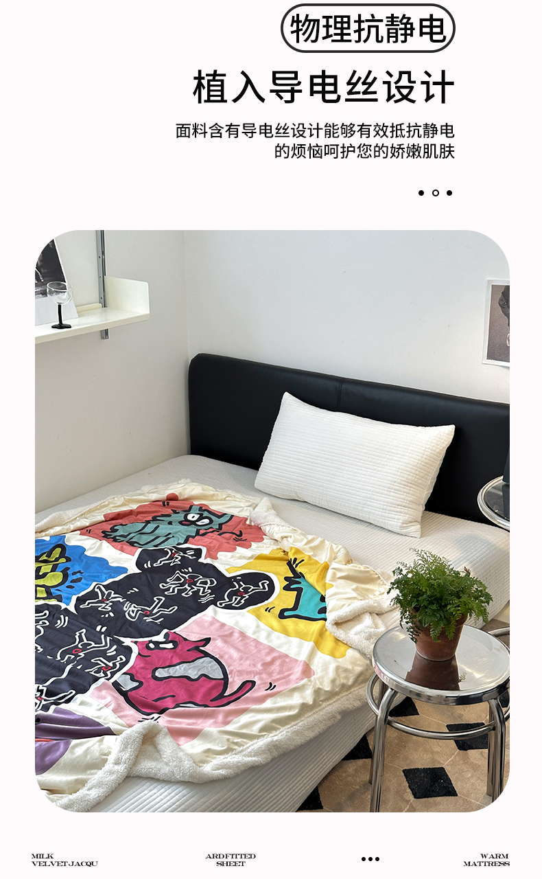 (总)色鬼布艺高端家居主号 2025新款秋冬加厚素色大朵羊驼绒贴布刺绣220g全消光牛奶绒四件套-暖宝,暖宝-白猫,暖宝-黄猫
