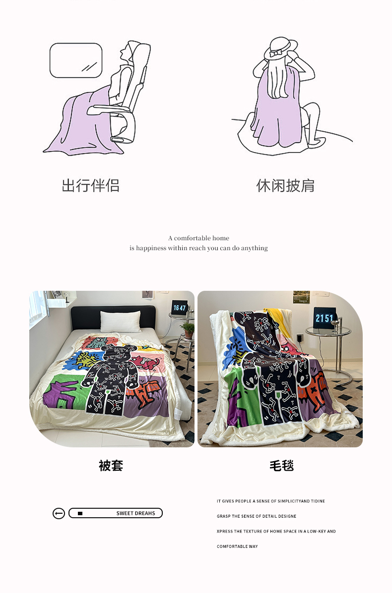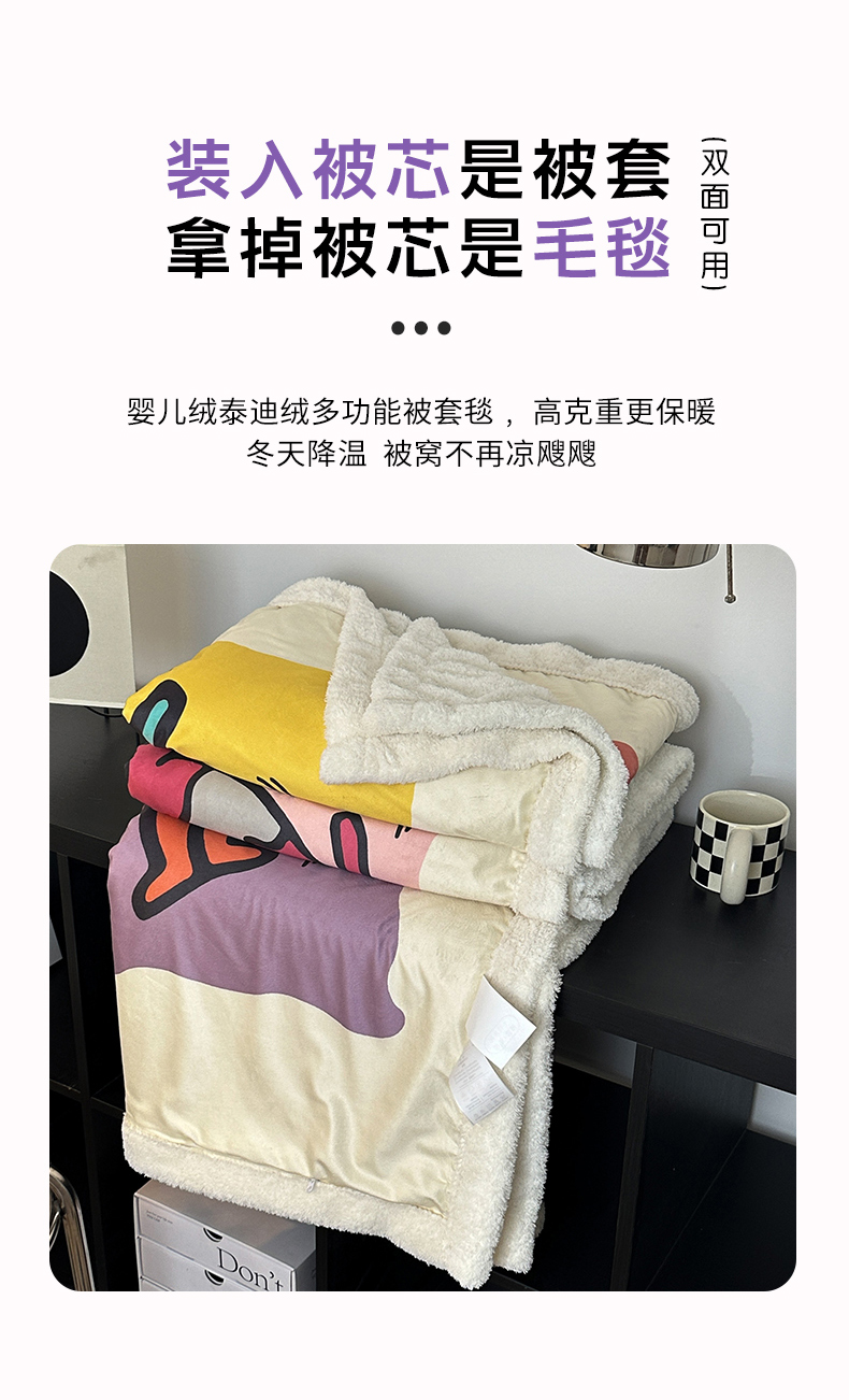 商品名称:色鬼 2023新款多功能泰迪绒婴儿绒毛毯盖毯子休闲披肩毯 多巴胺