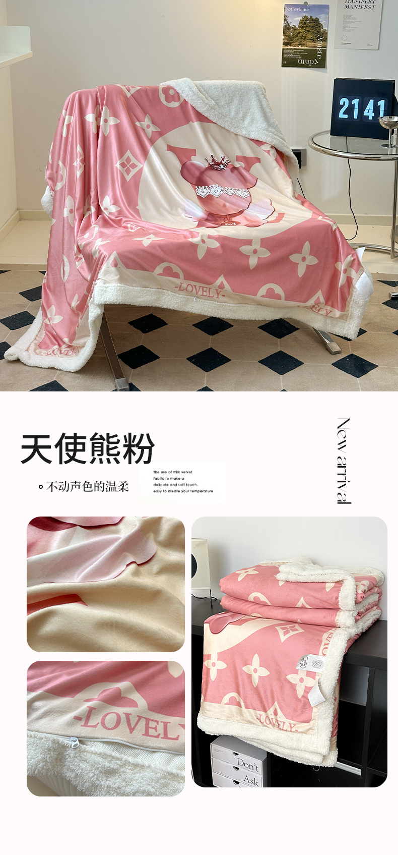 商品名称:色鬼 2023新款多功能泰迪绒婴儿绒毛毯盖毯子休闲披肩毯 天使熊粉