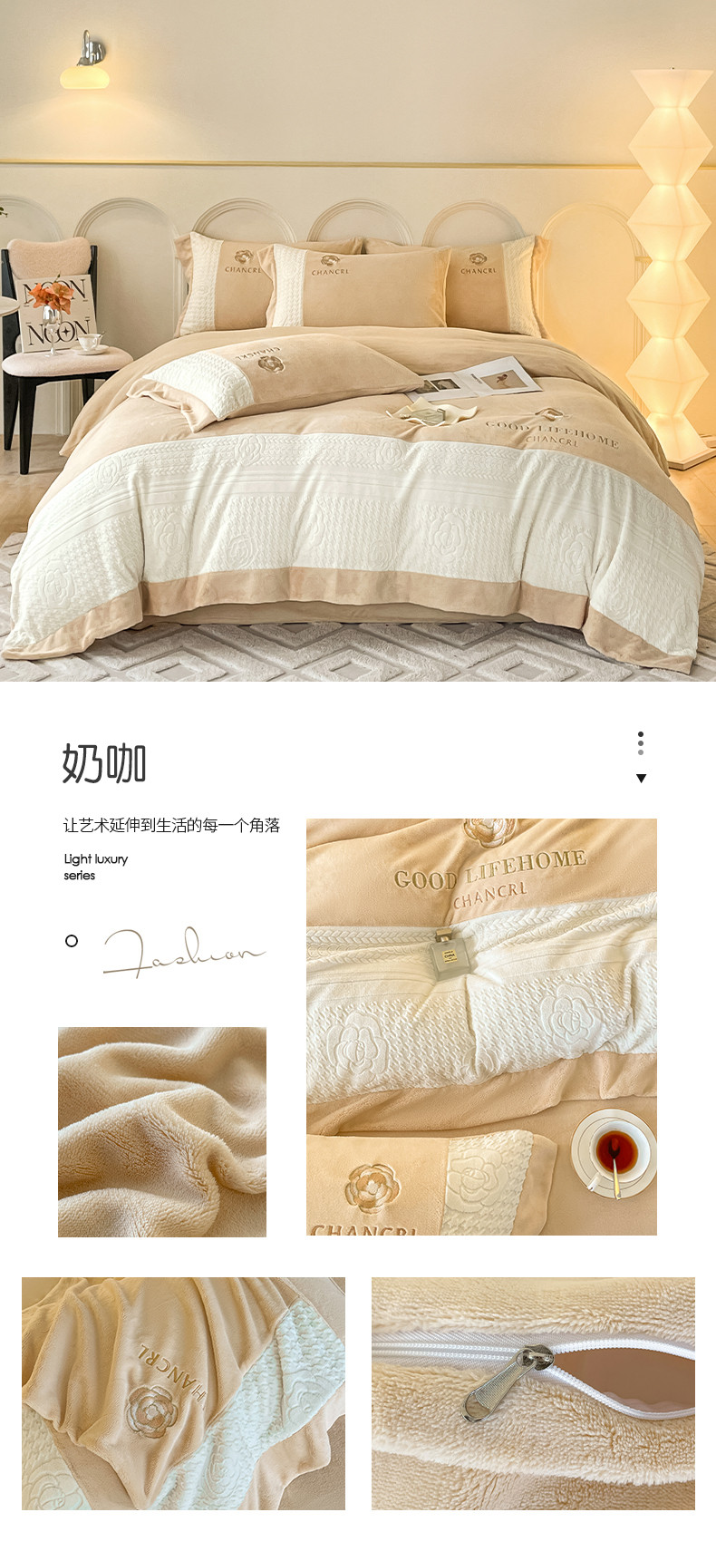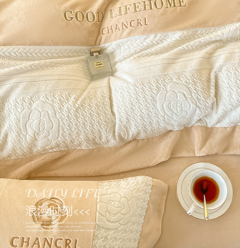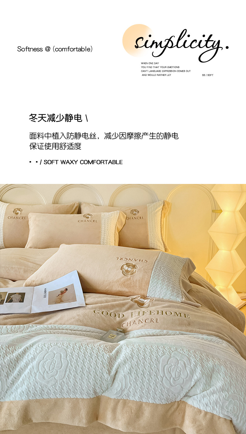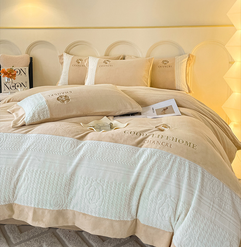 当前位置: 91家纺网 > 商品网购 > 床品套件 > 四件套 > 牛奶绒四件套 > 娜娜 2023新款牛奶绒三拼轻奢风四件套 奶咖