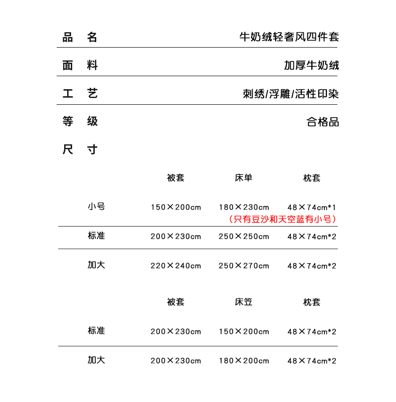 标准(被套200*230cm 床笠150*200cm 枕套48*74cm*2) | ¥145.00 |