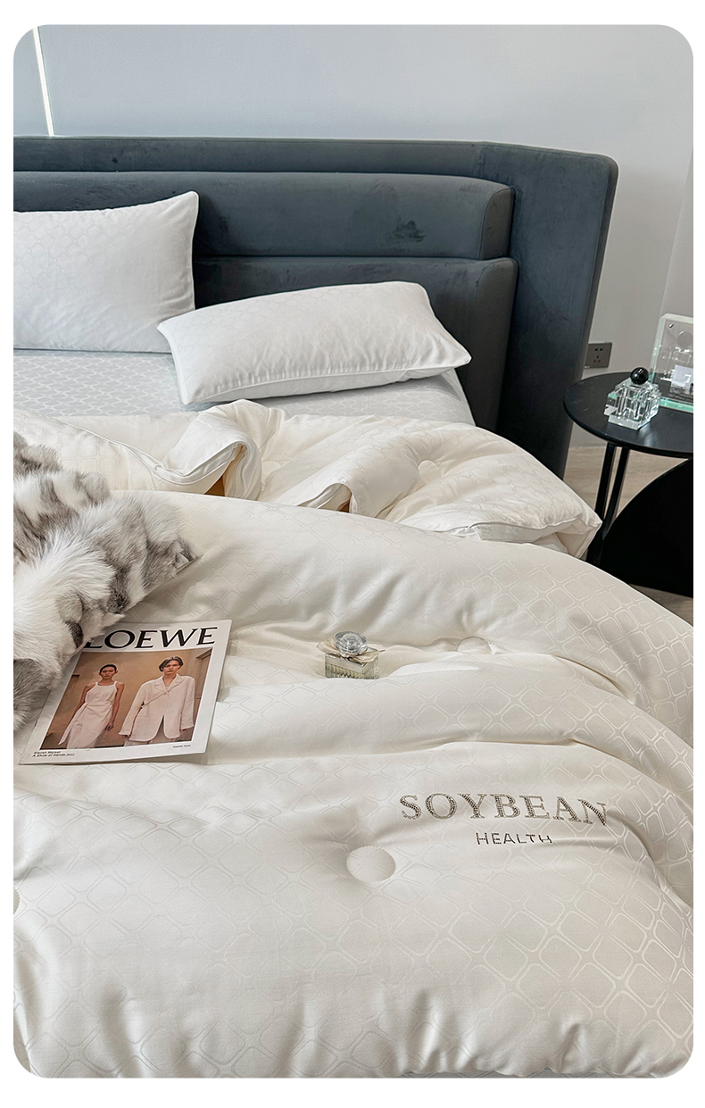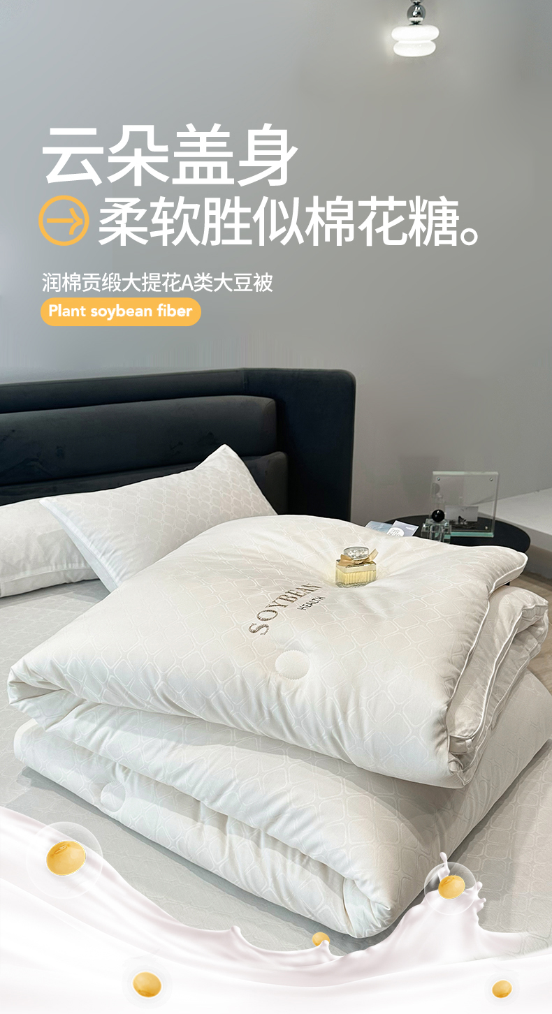 头等舱 2023新款润棉贡缎大提花A类20大豆抗菌秋冬被(基础款) 格瑞塔本白