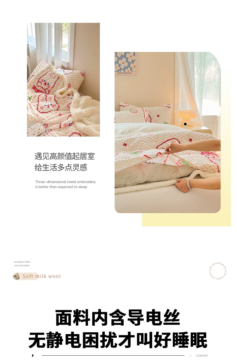 (总)网客家纺 2025新款羊毛绒牛奶绒夹棉床盖四件套,豹点-深灰,简格-黑色,简格-咖色,空间-红色,泥点-灰色,泥点-咖色,维奥-灰色,斜格-灰色,斜格-墨绿