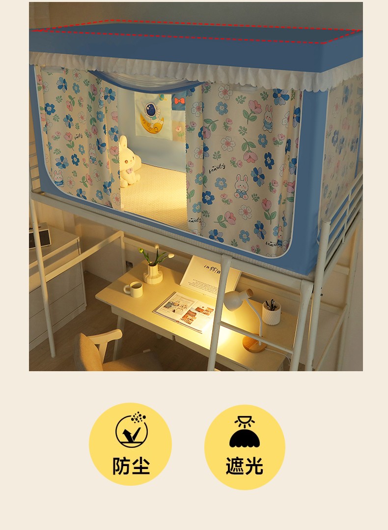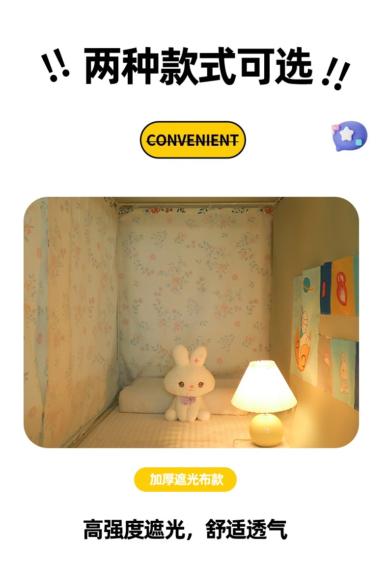 当前位置: 91家纺网 > 商品网购 > 床上用品 > 蚊帐 > 学生蚊帐 > 迷仙巢 2023新款99%加厚遮光布涂银强遮光三开门学生蚊帐 萌萌兔