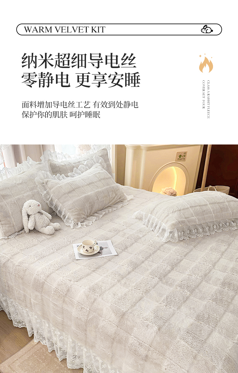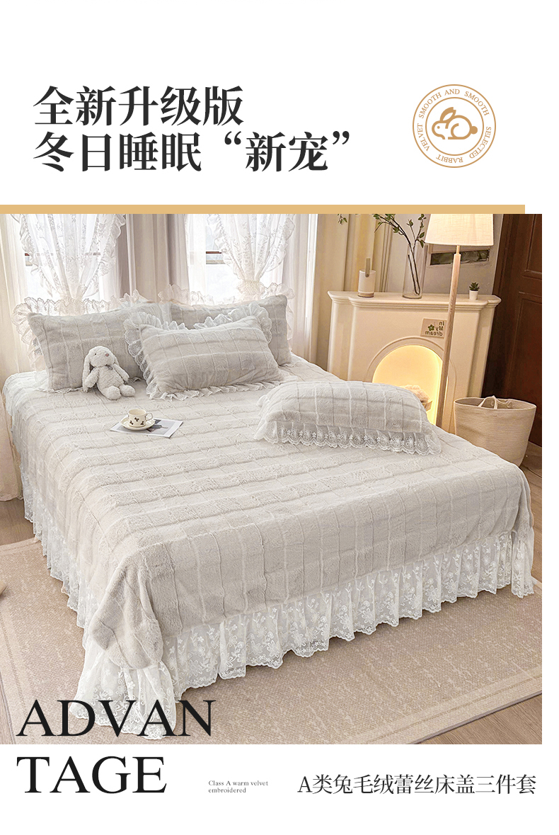 商品名称:(总)宜凡家纺 2023新款宜凡-高克重兔绒牛奶绒床盖三件套