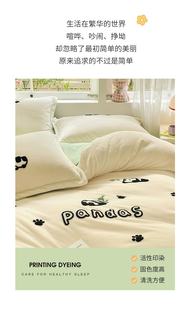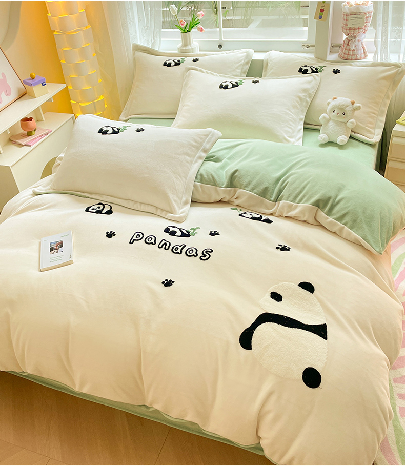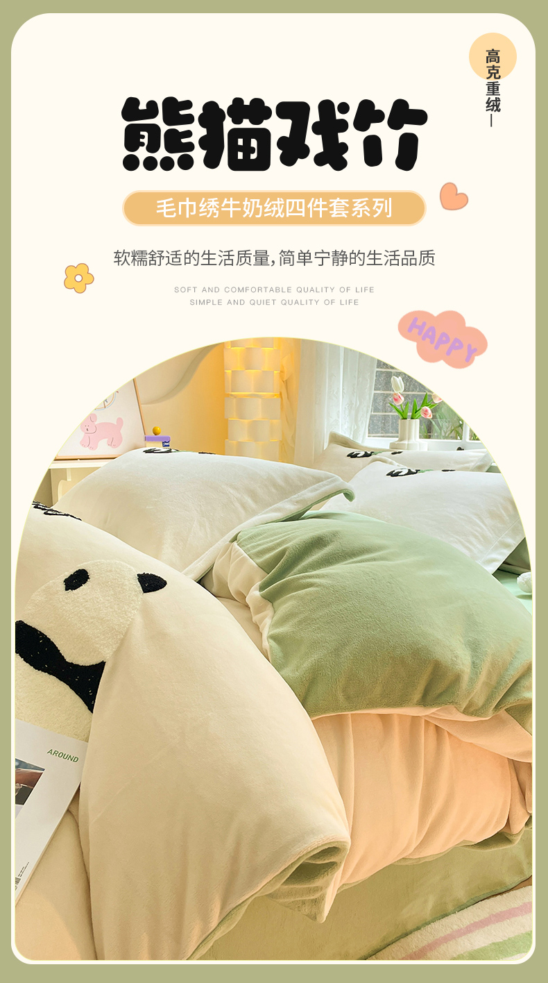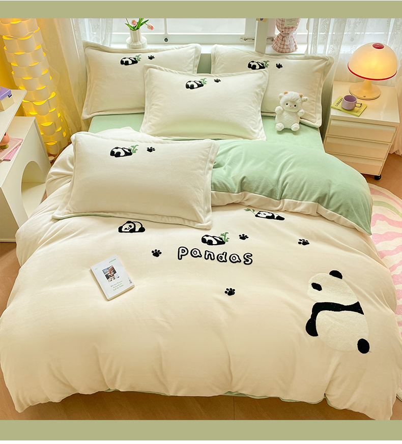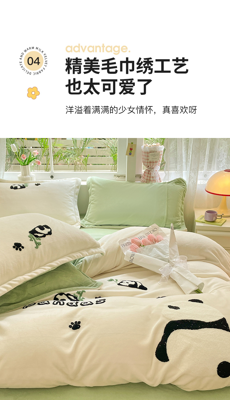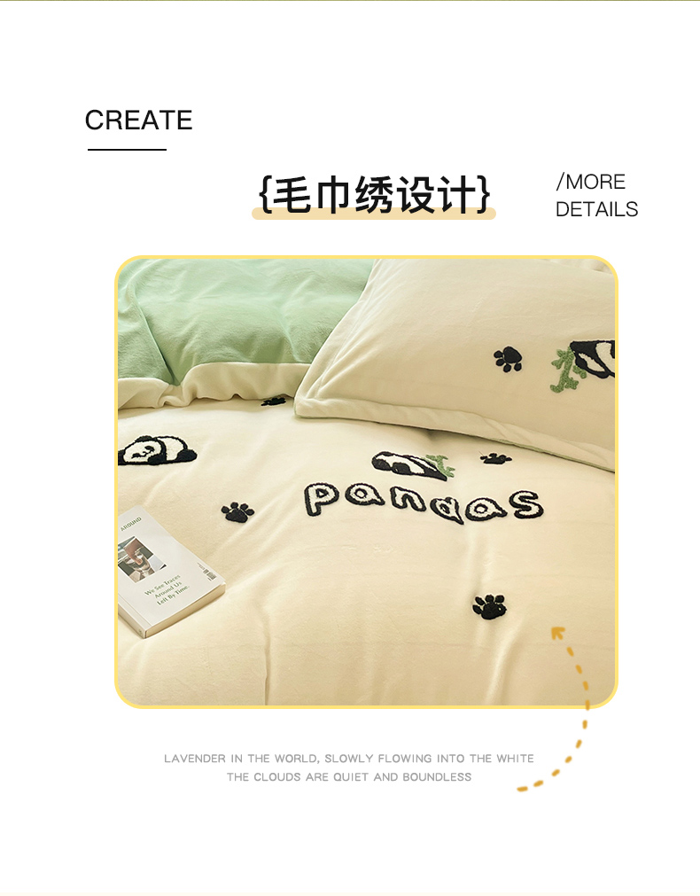 商品名称:丽美人家纺 2023新款毛巾绣绒四件套 熊猫戏竹A