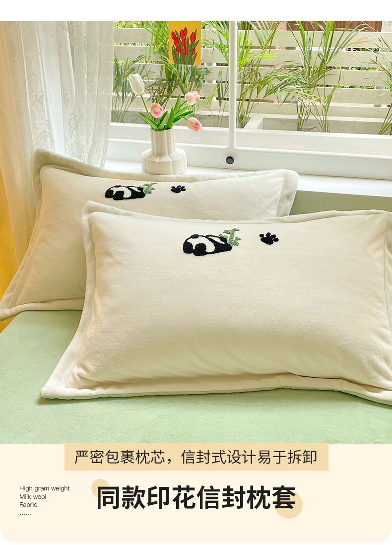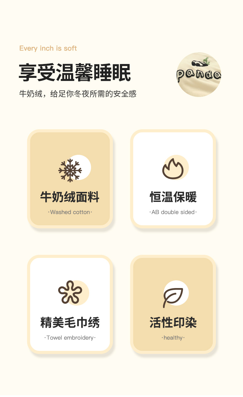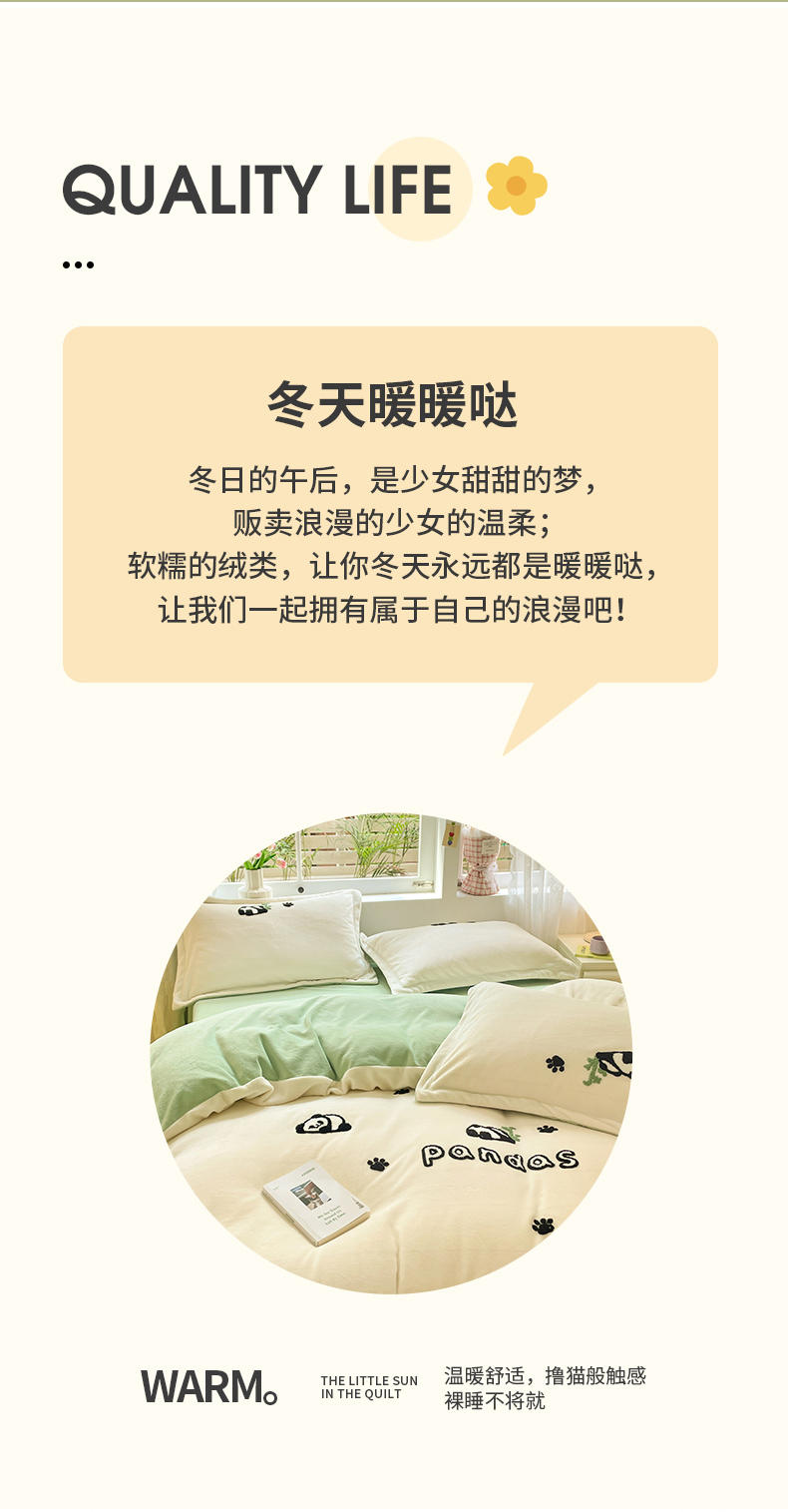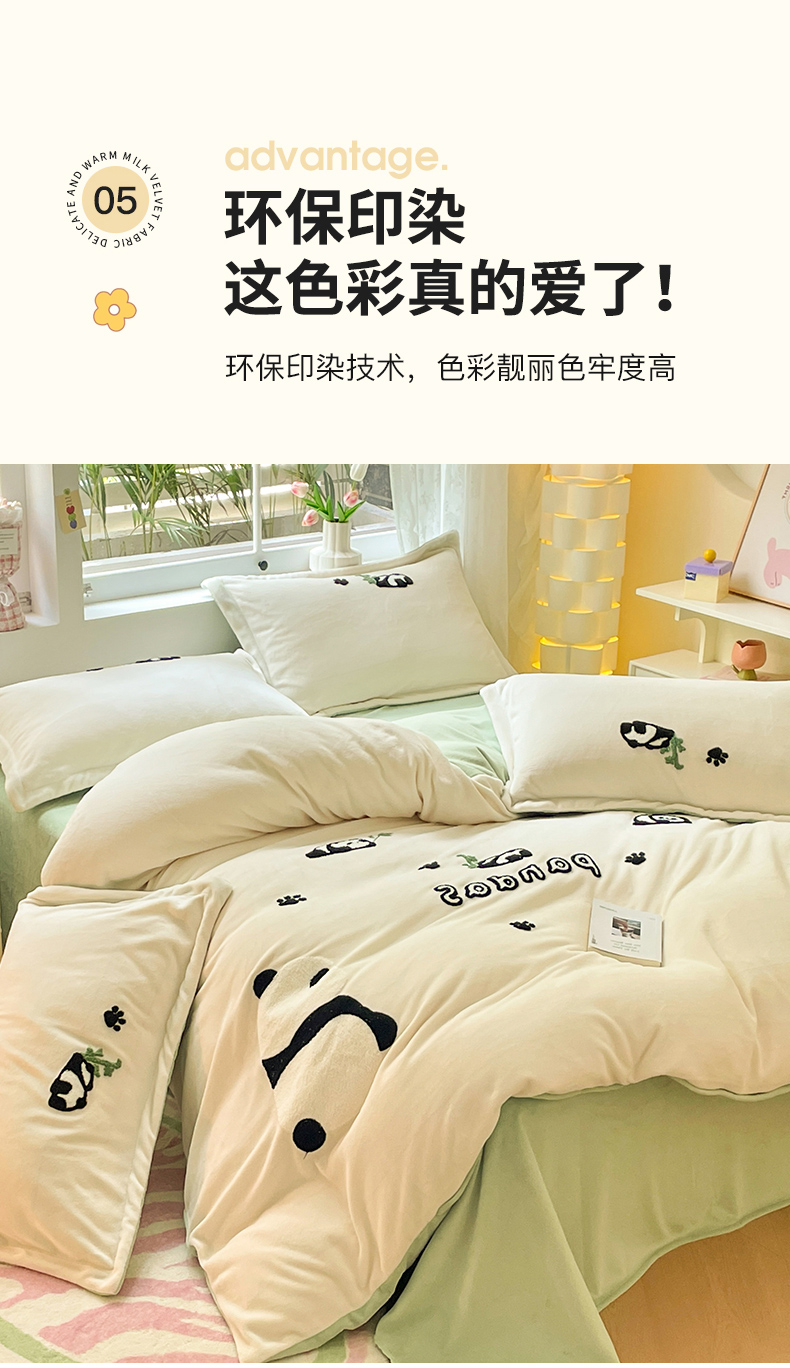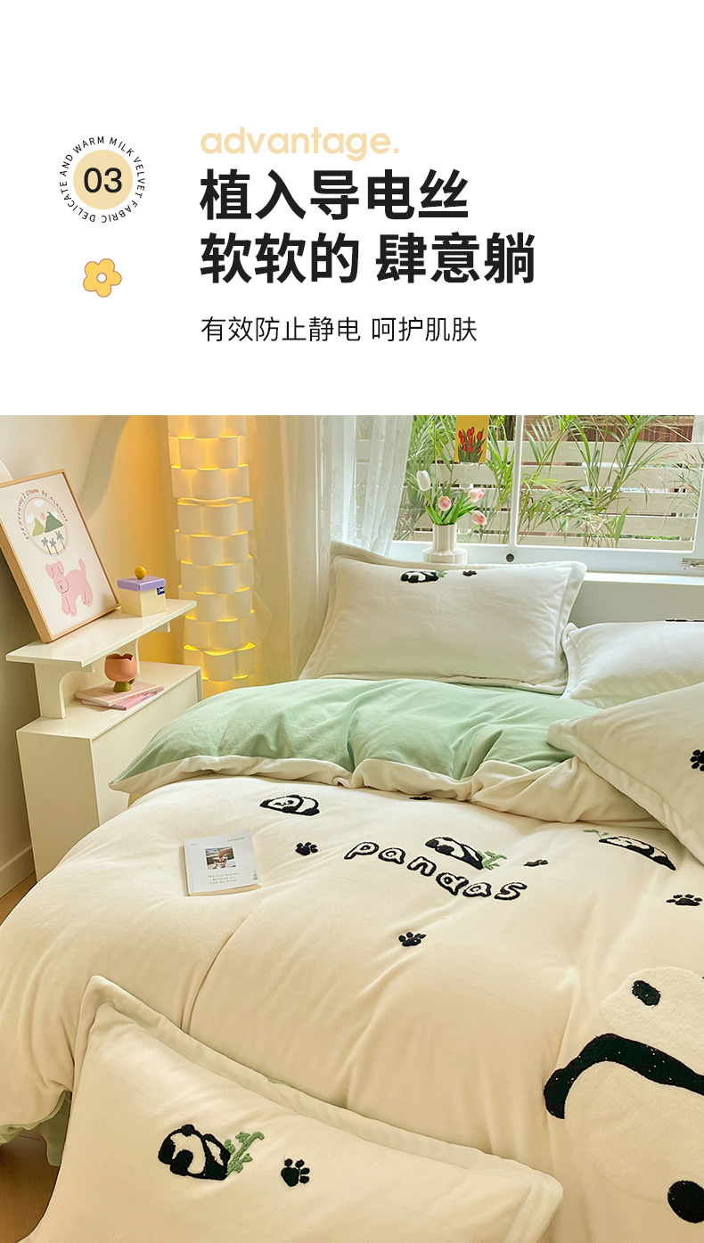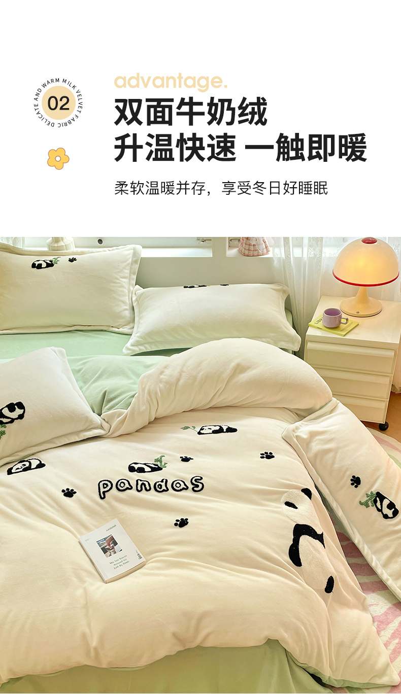 商品名称:丽美人家纺 2023新款毛巾绣绒四件套 熊猫戏竹A