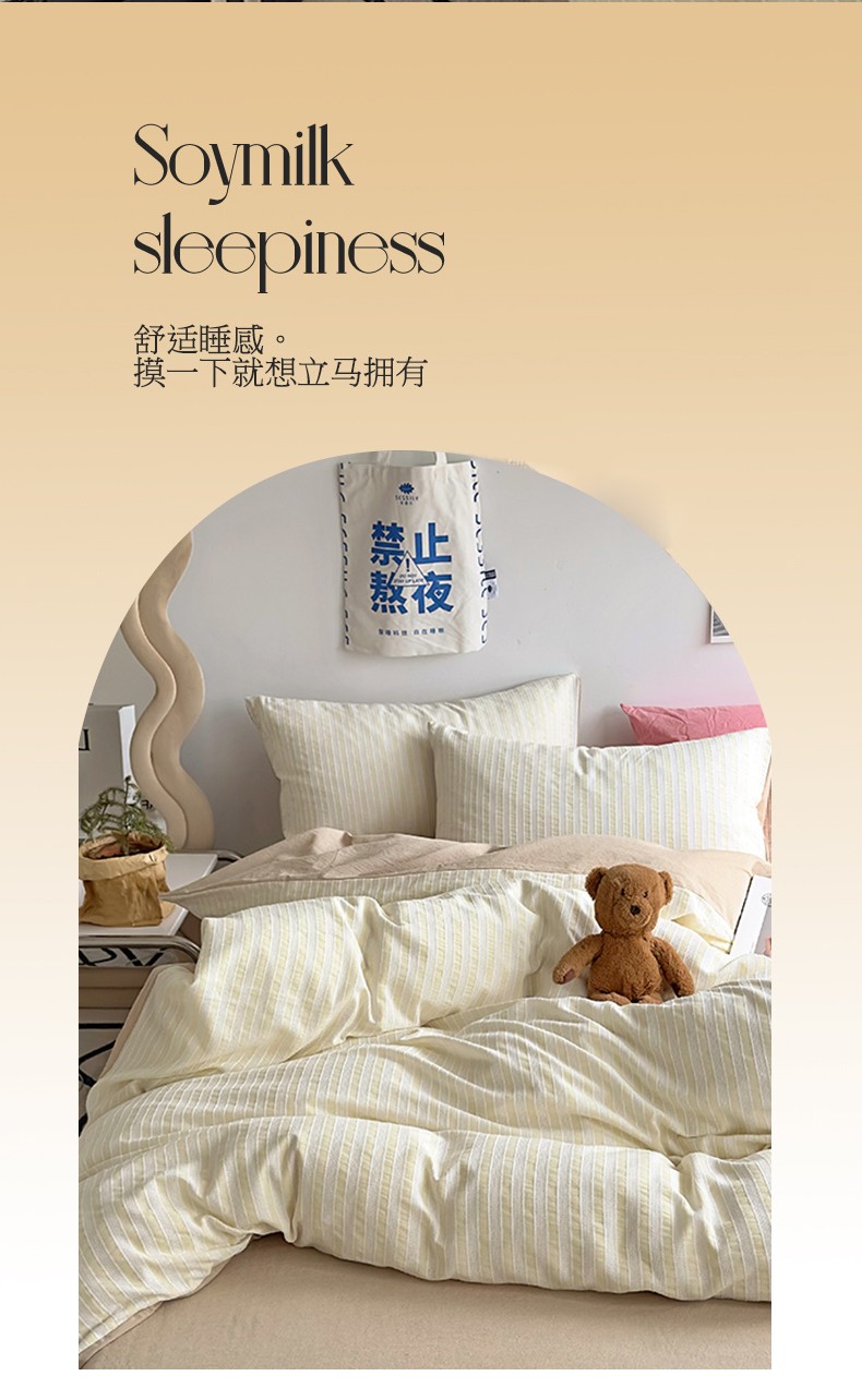 (总)2024秋冬新款A类简约日系全棉色织水洗棉纯棉四件套,粉密条,灰密条,绿密条,米密条,米雅,沐妍-粉,沐妍-黄,沐妍-灰,沐妍-绿,日落-粉,日落-灰,日落绿,中古绿条