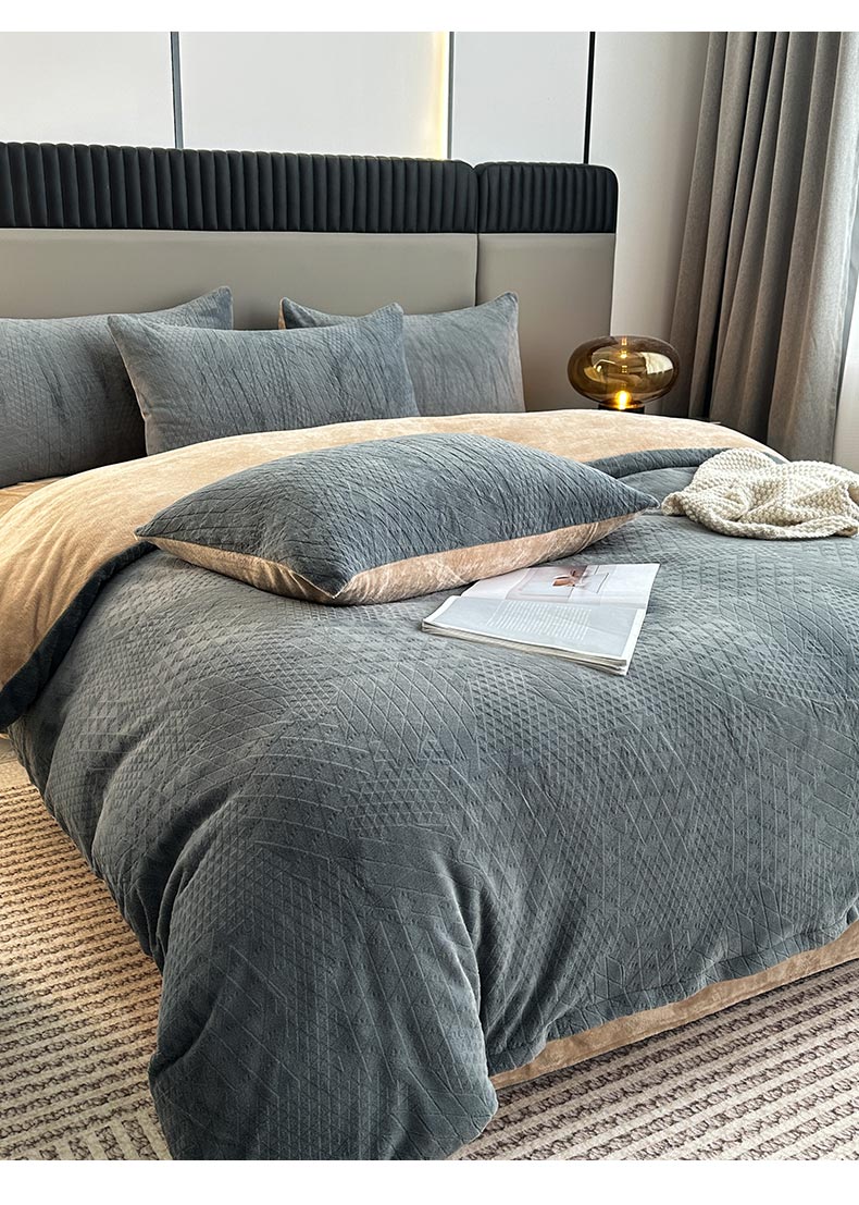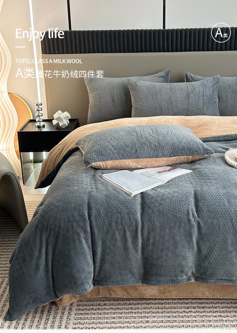 铠畅家纺 2023爆款A类230g立体雕花牛奶绒四件套 七巧板高级灰