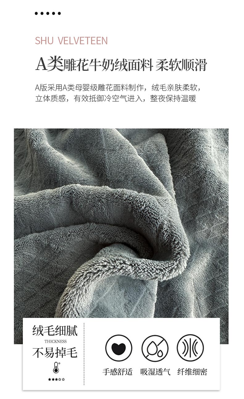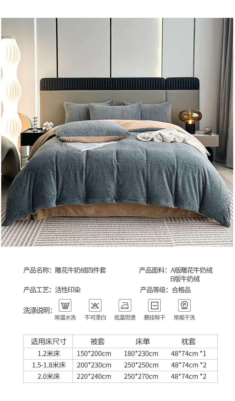 商品名称:铠畅家纺 2023爆款A类230g立体雕花牛奶绒四件套 七巧板高级灰
