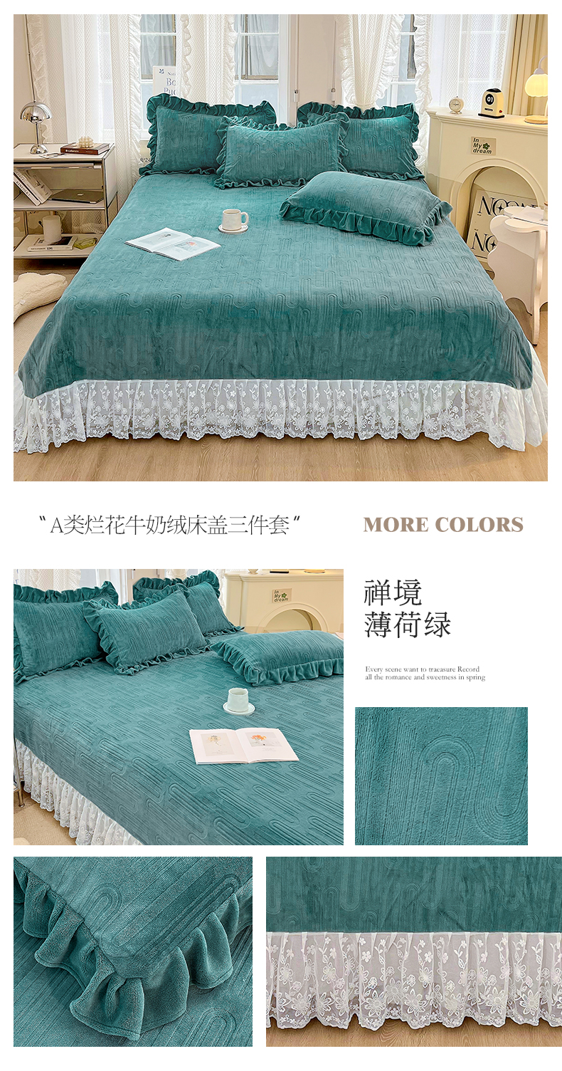 商品名称:宜凡 2023新款烂花牛奶绒床盖三件套 禅境-薄荷绿