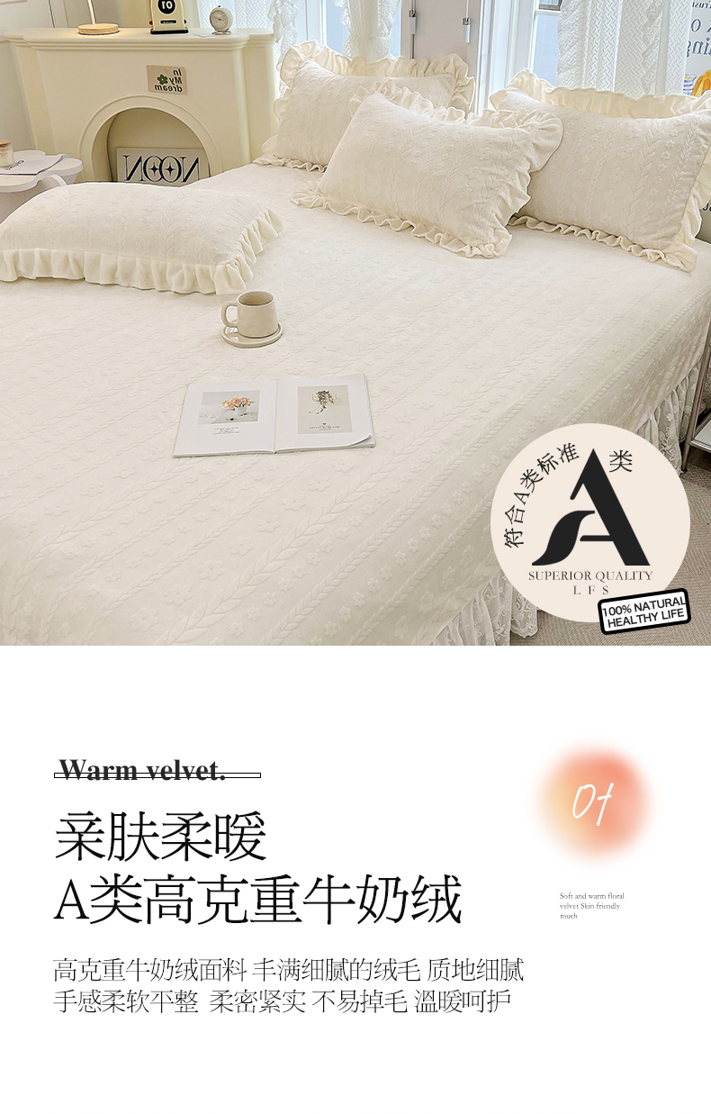 (总)宜凡家纺 2025新款兔绒提花牛奶绒夹棉床裙四件套,爱心 少女粉,爱心 粉紫,爱心 驼色,蝶舞 大红,蝶舞 米色,蝶舞 浅紫,蝶舞 玉色,简爱 苍青,简爱 豆沙紫,简爱 玉色,樱桃 苍青,樱桃 豆沙紫,樱桃 奶油白