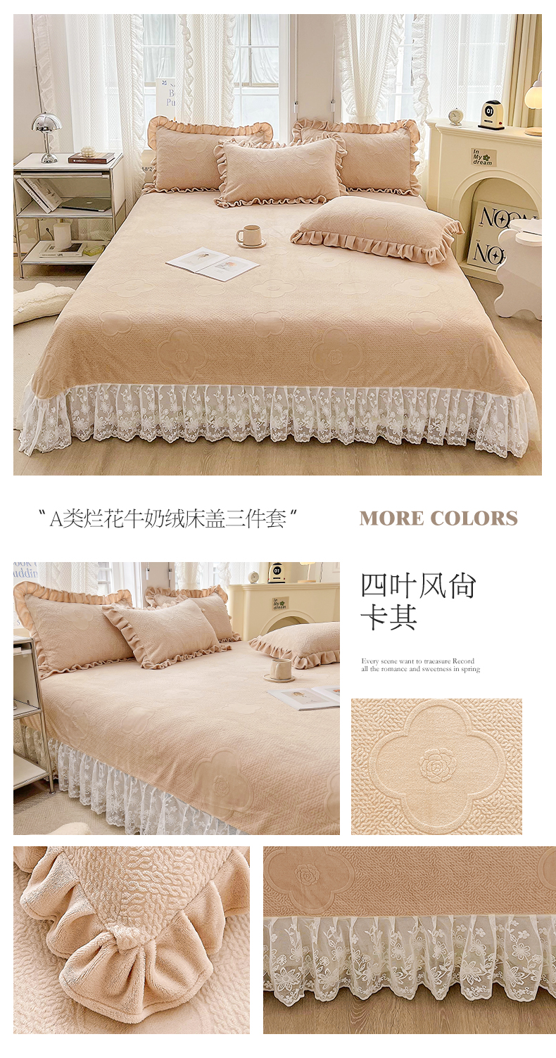 商品名称:宜凡 2023新款烂花牛奶绒床盖三件套 四叶风尚-卡其