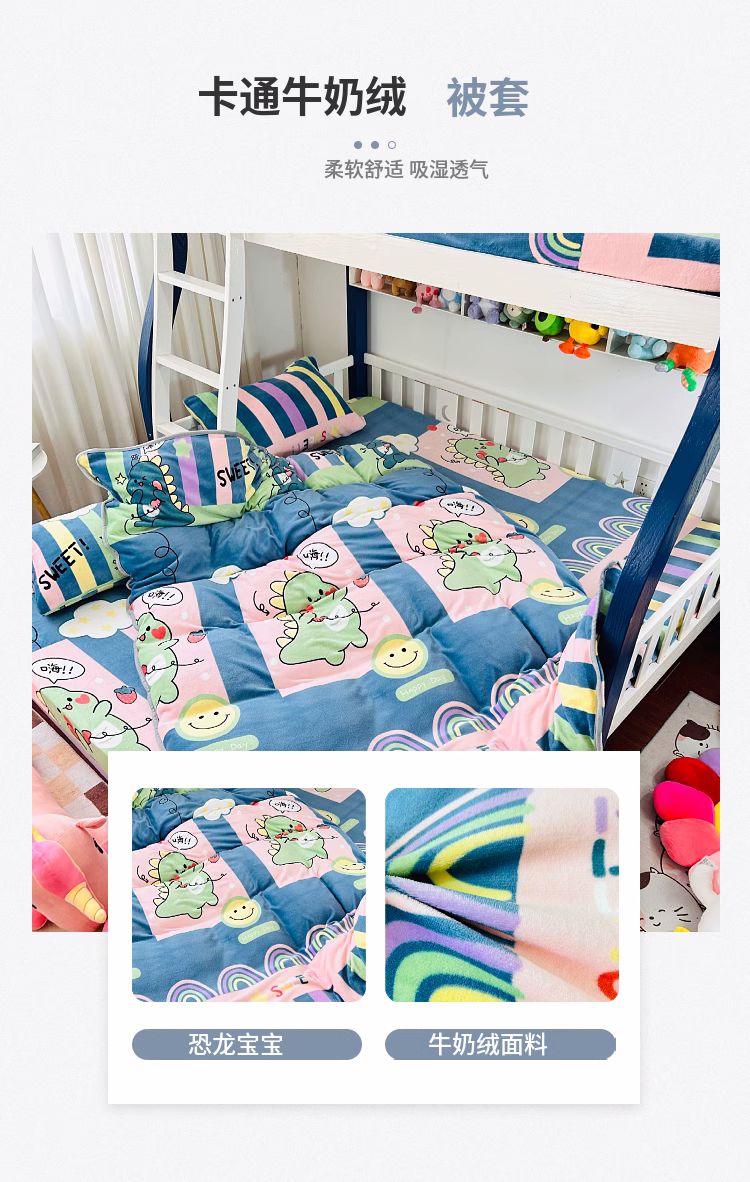 当前位置: 91家纺网 > 商品网购 > 床上用品 > 被套 > 小虾米 2023新款上下床加厚牛奶绒被套 恐龙宝宝