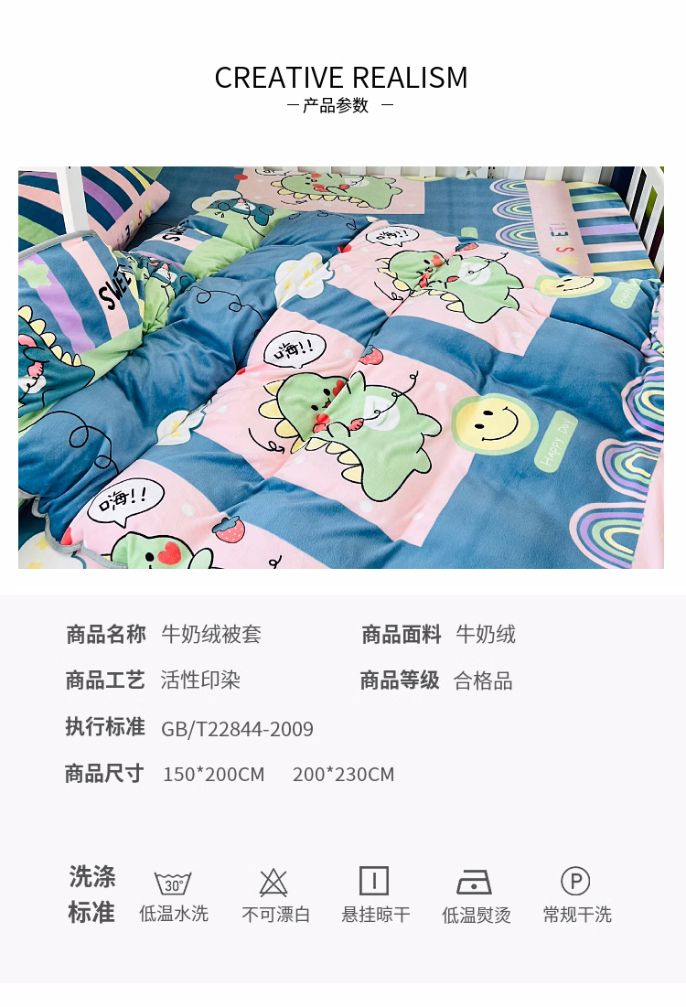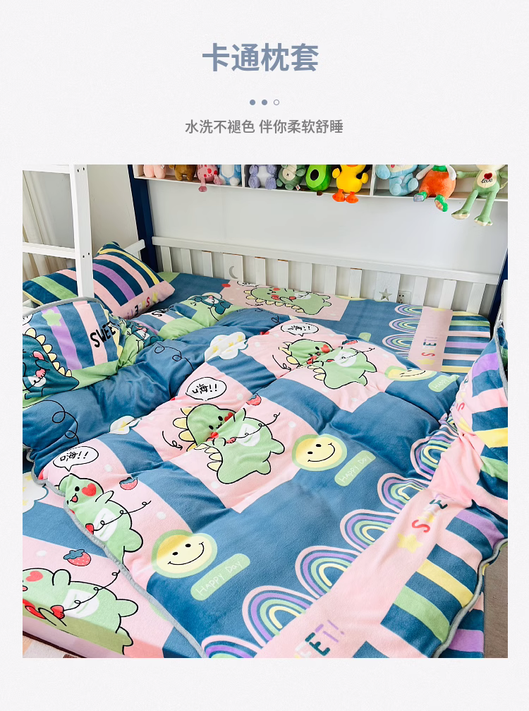 • 91家纺网 家纺一手货源 找家纺 小虾米 2023新款上下床加厚牛奶绒被套 恐龙宝宝