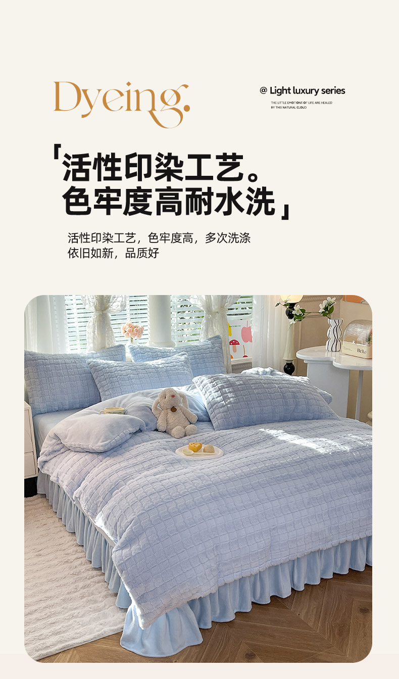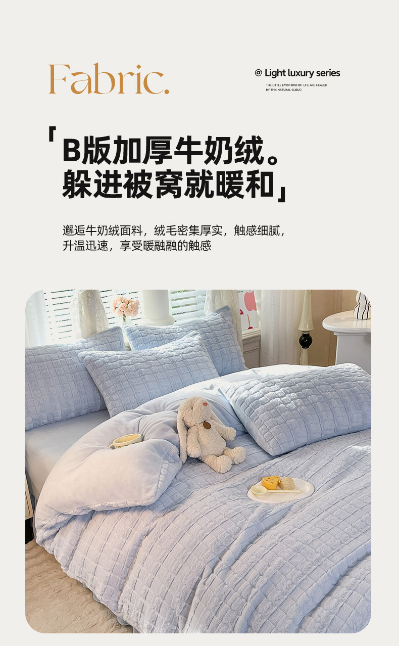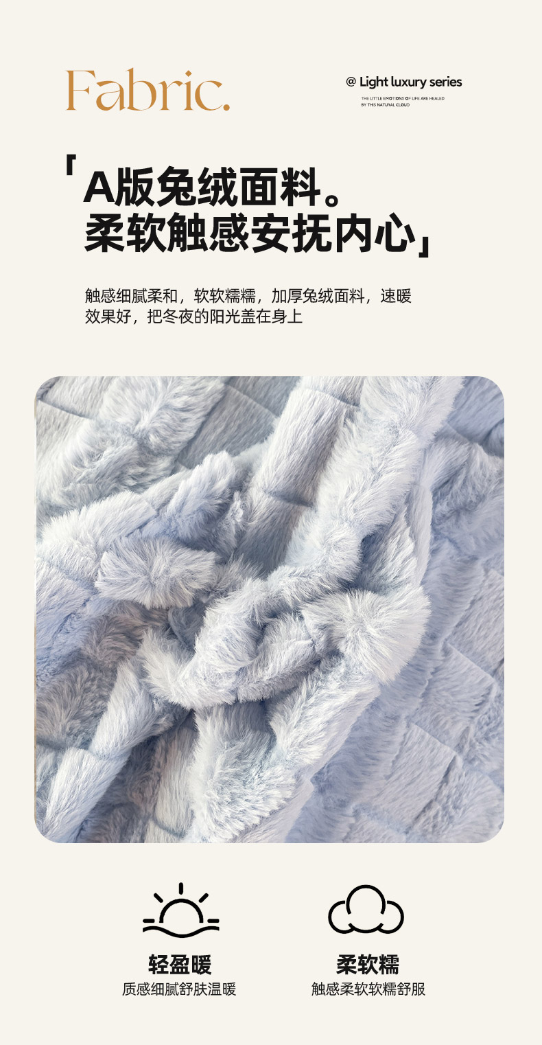 商品名称:丝印良品 2023新款高克重兔绒牛奶绒四件套 天空蓝