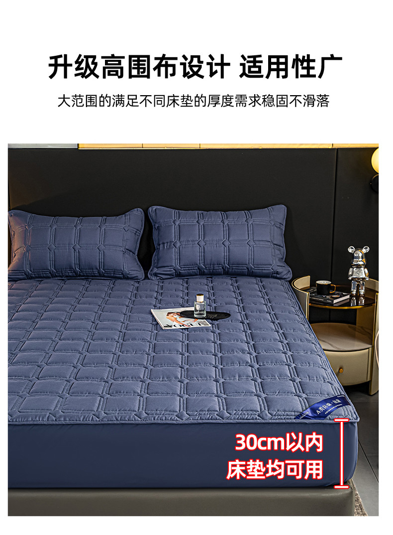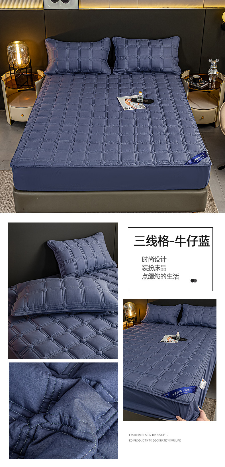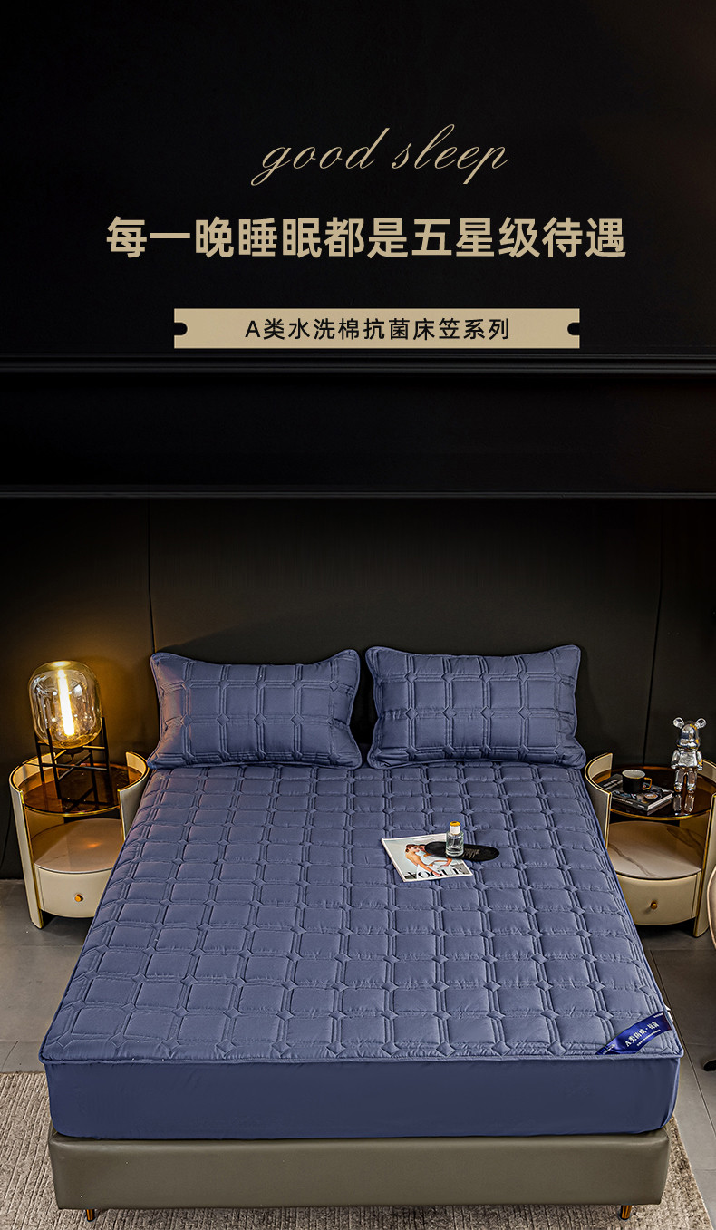 X猫先生床笠 A类水洗棉五星级酒店抗菌夹棉床笠加高加厚床垫保护罩 三线格-牛仔蓝