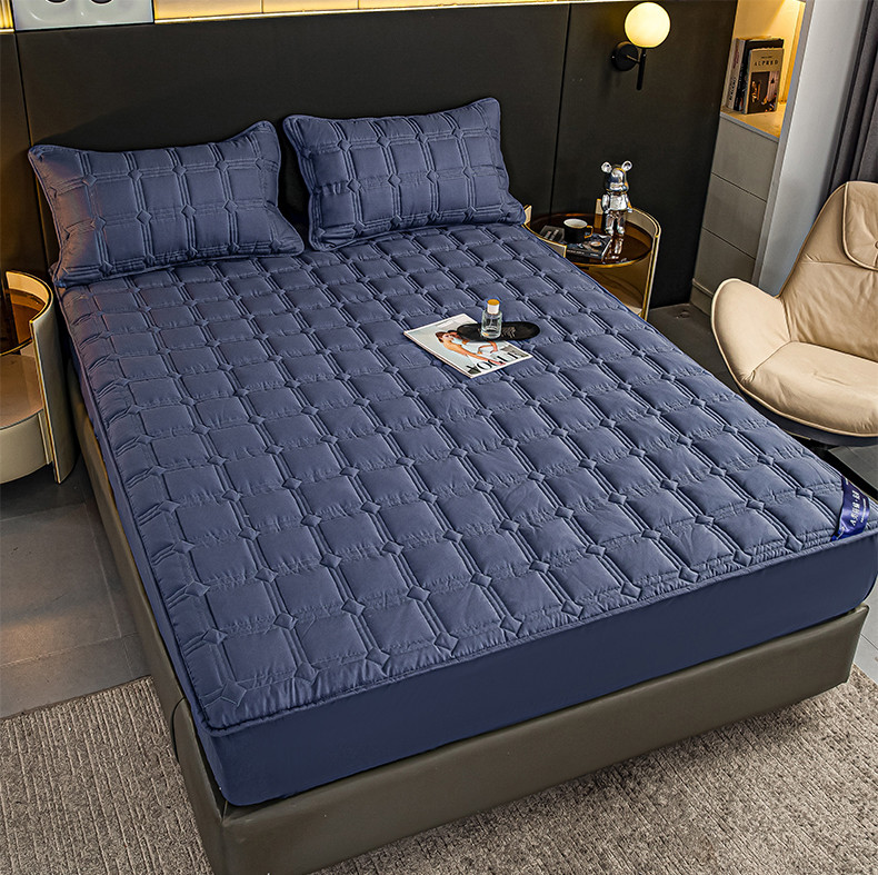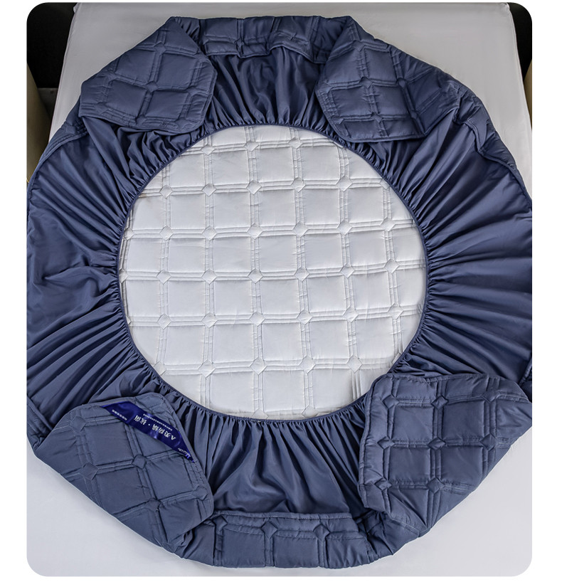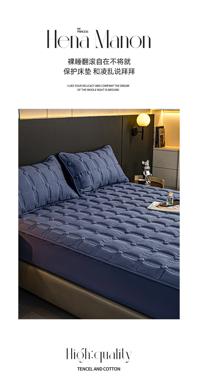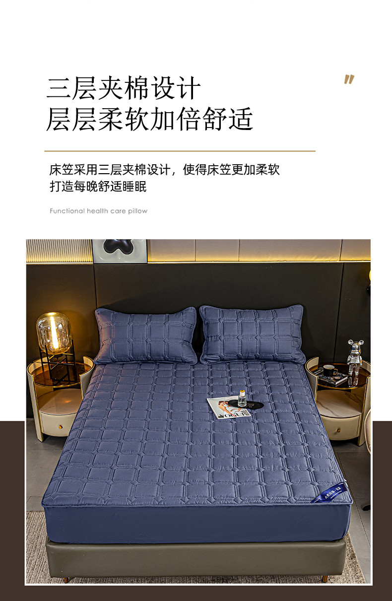 X猫先生床笠 A类水洗棉五星级酒店抗菌夹棉床笠加高加厚床垫保护罩 三线格-牛仔蓝