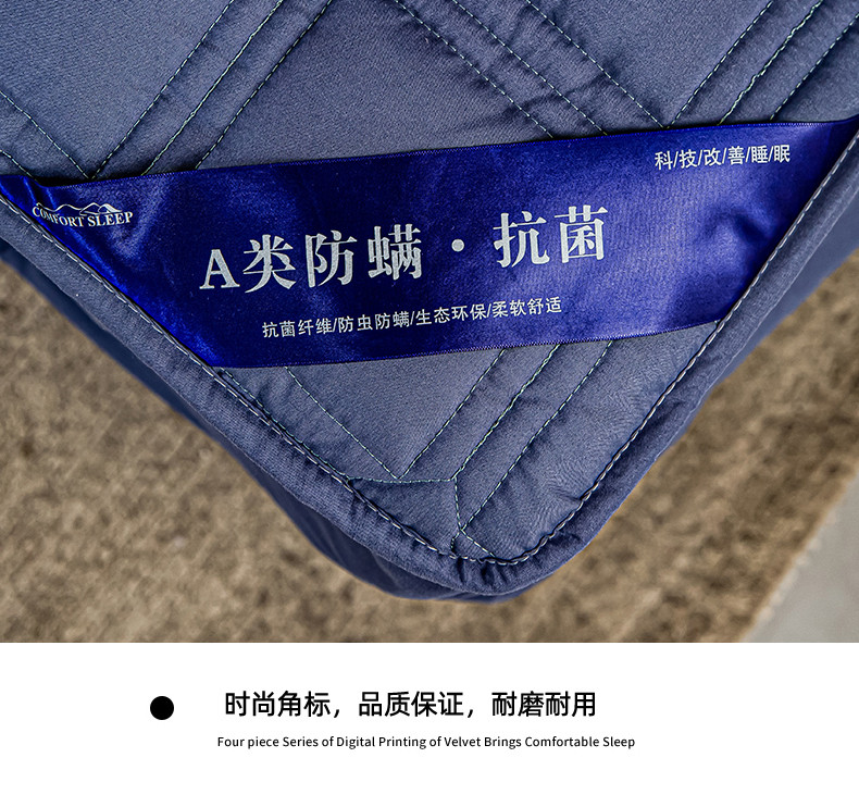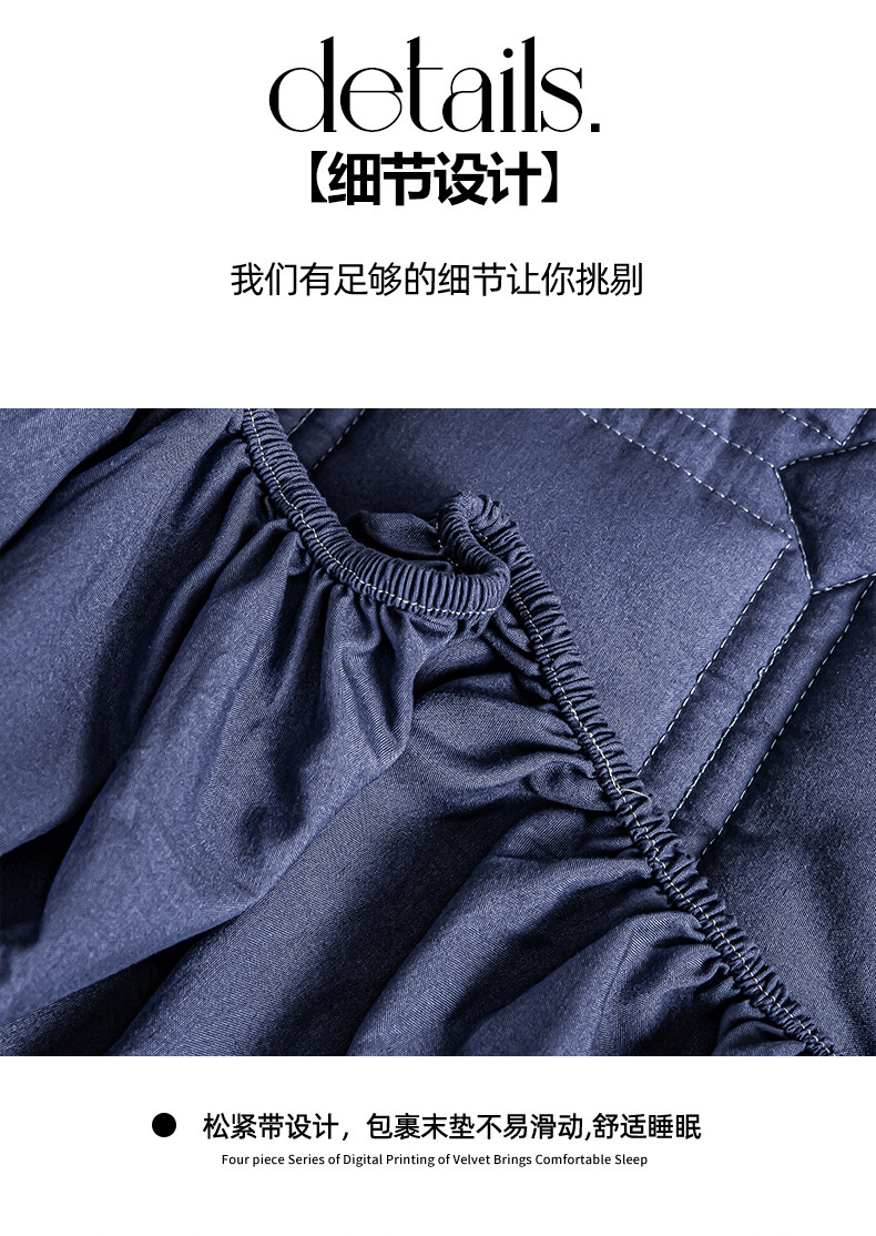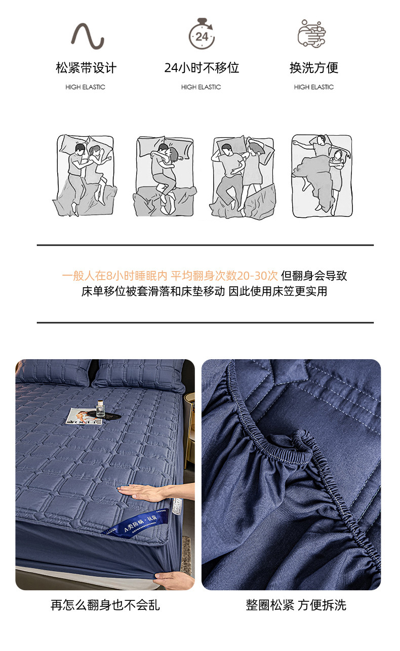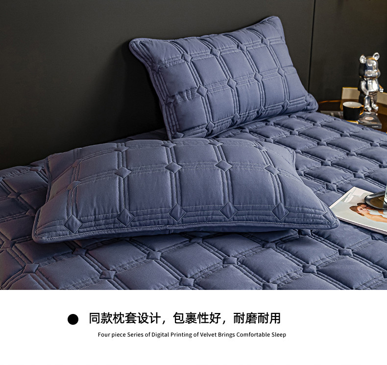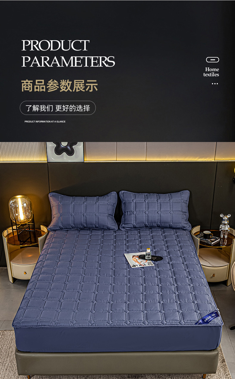 • 91家纺网 家纺一手货源 找家纺 X猫先生床笠 A类水洗棉五星级酒店抗菌夹棉床笠加高加厚床垫保护罩 三线格-牛仔蓝