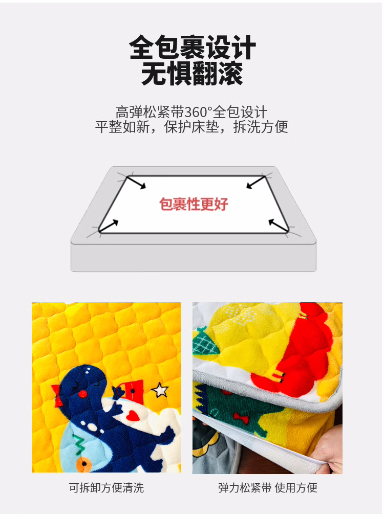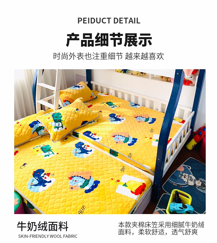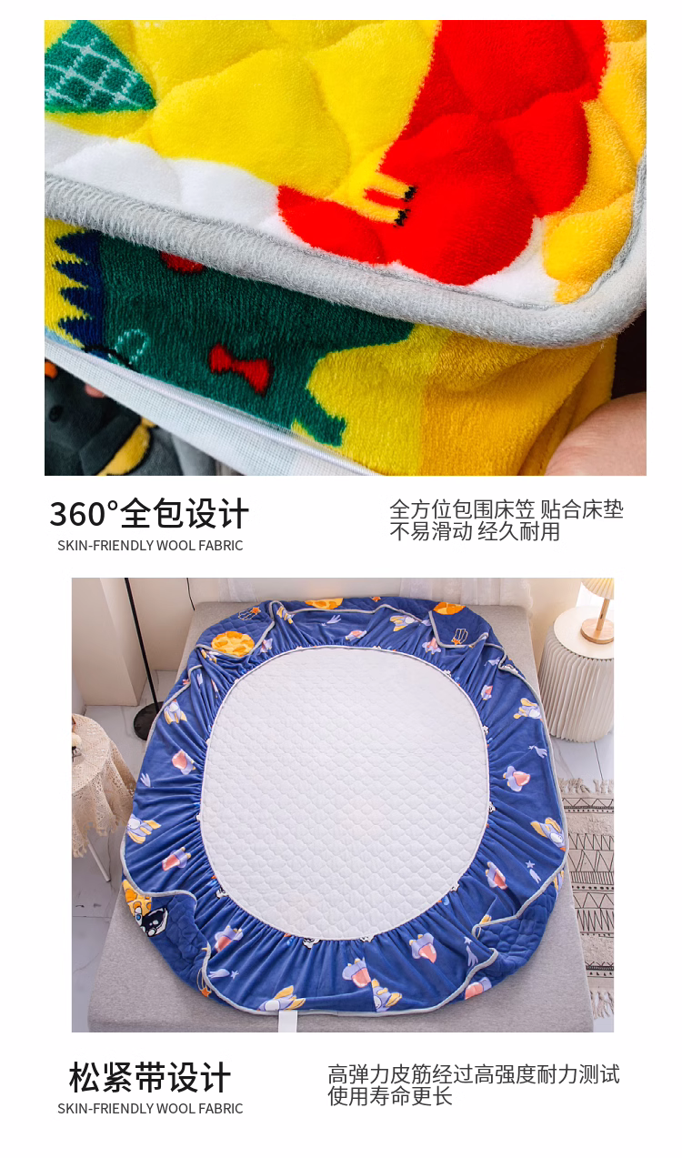 • 91家纺网 家纺一手货源 找家纺 小虾米 2023新款上下床加厚牛奶绒夹棉床笠 可爱龙