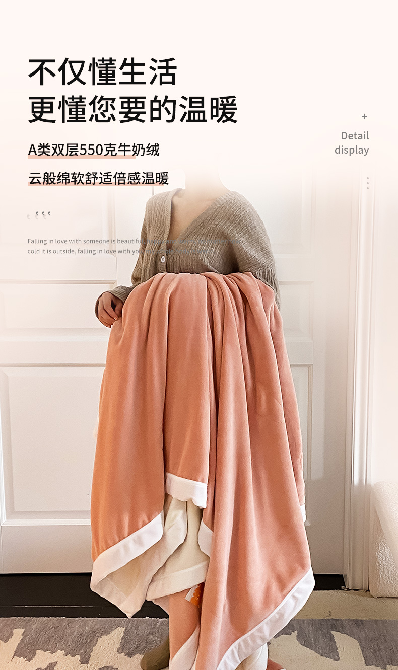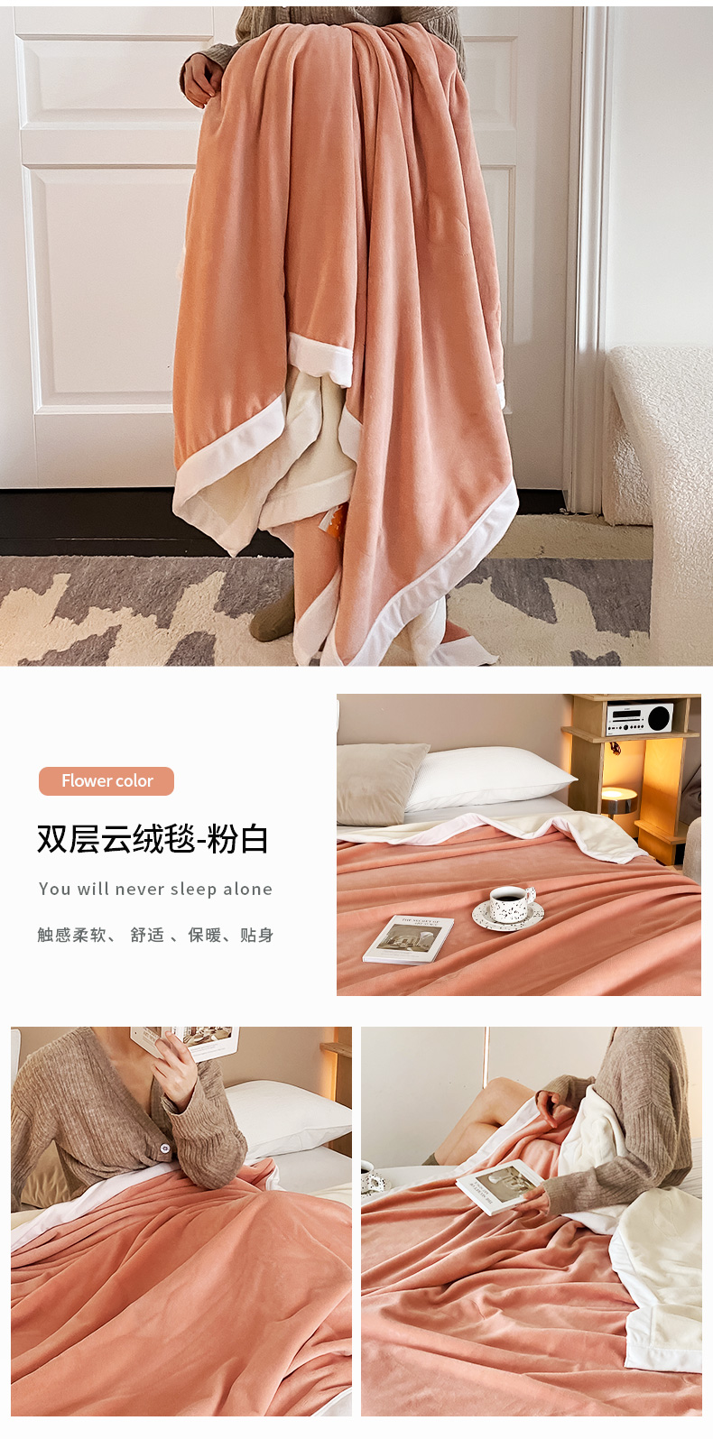 商品名称:2023新款高克重全消光牛奶绒双层云绒毯风格二 双层云绒毯-粉白