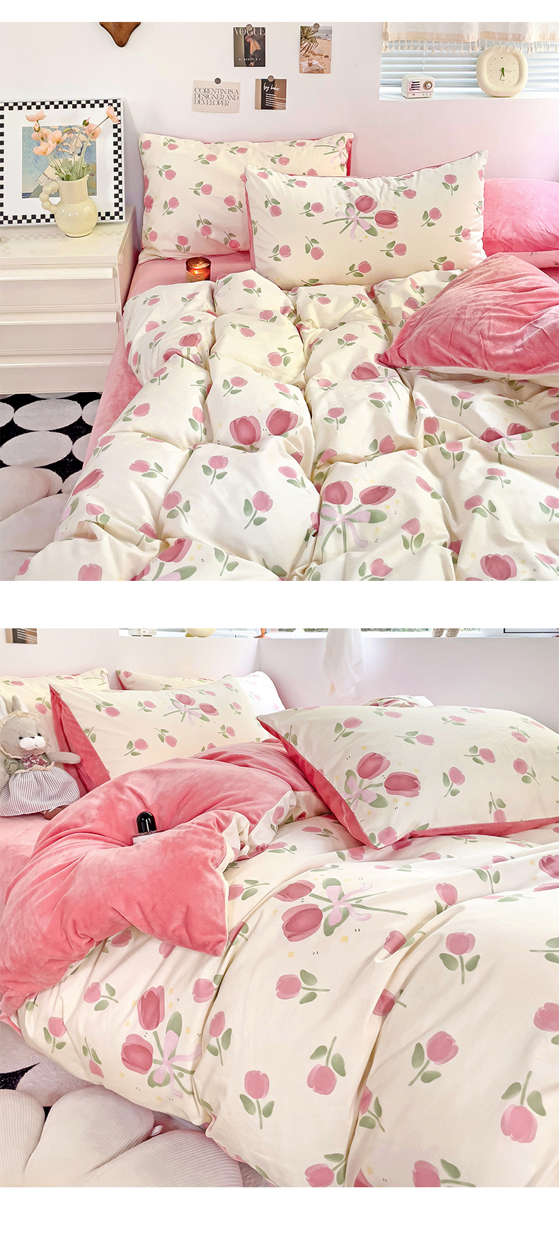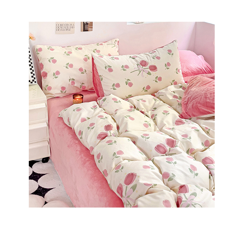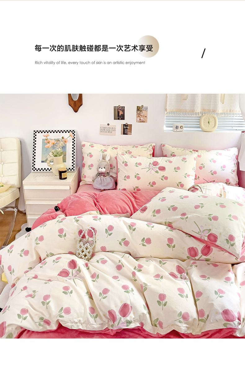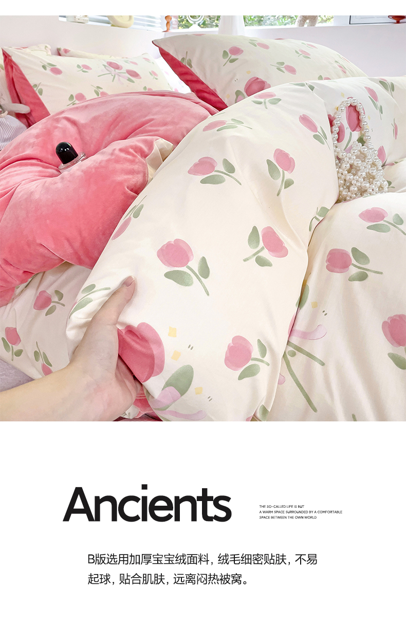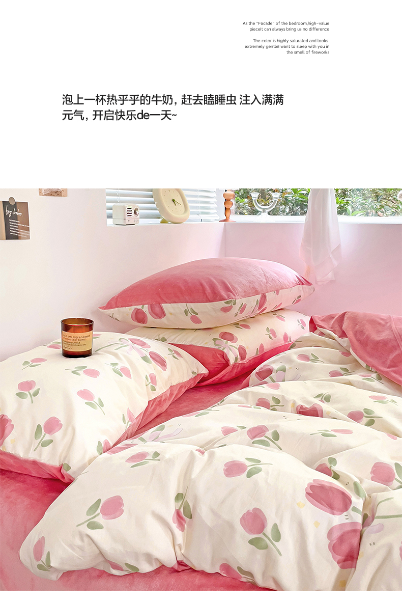 商品名称:盛馨家纺 2023新款棉加绒A版高支高密13372全棉加B版加厚宝宝绒牛奶绒床单床笠四件套 玫瑰庄园