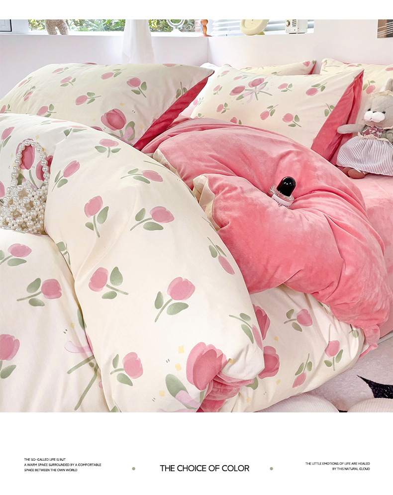 盛馨家纺 2023新款棉加绒A版高支高密13372全棉加B版加厚宝宝绒牛奶绒床单床笠四件套 玫瑰庄园