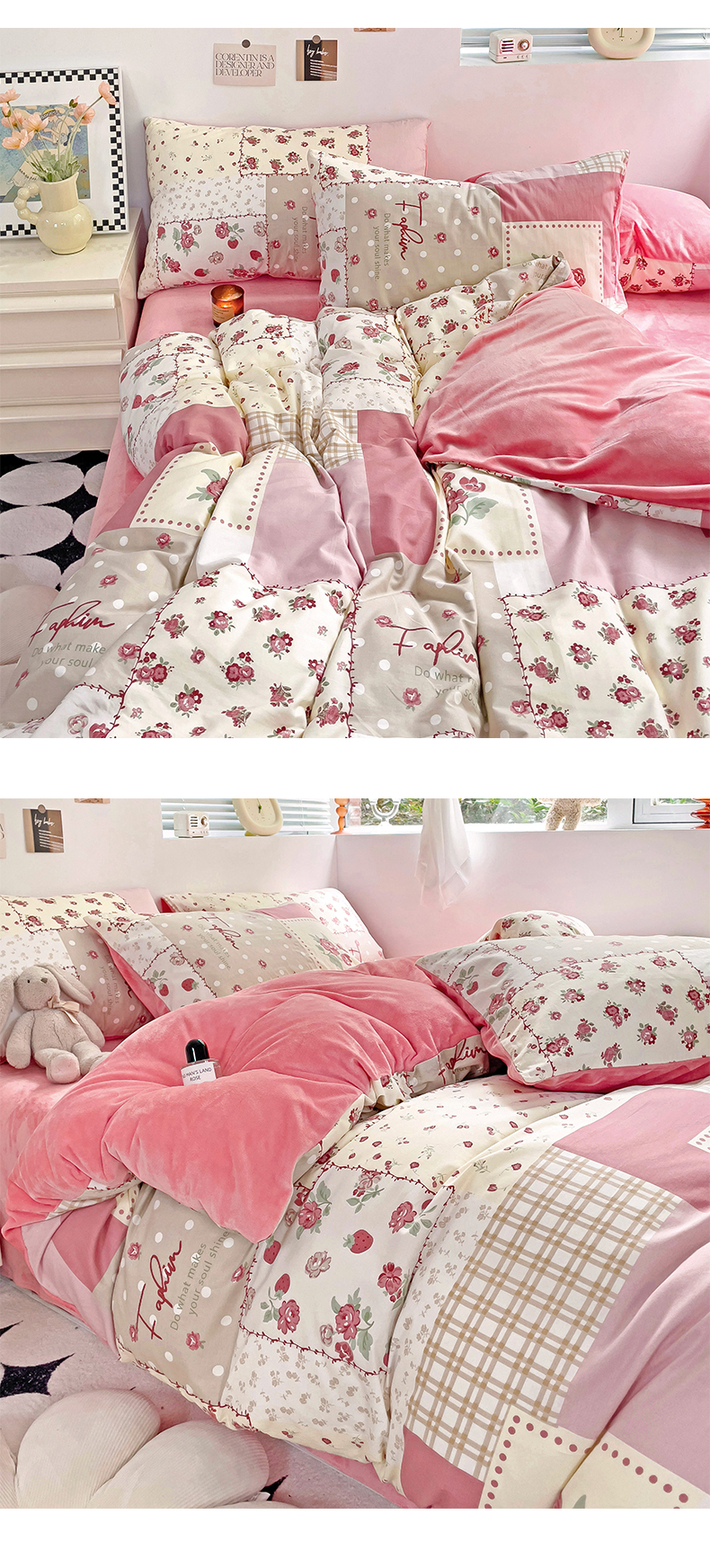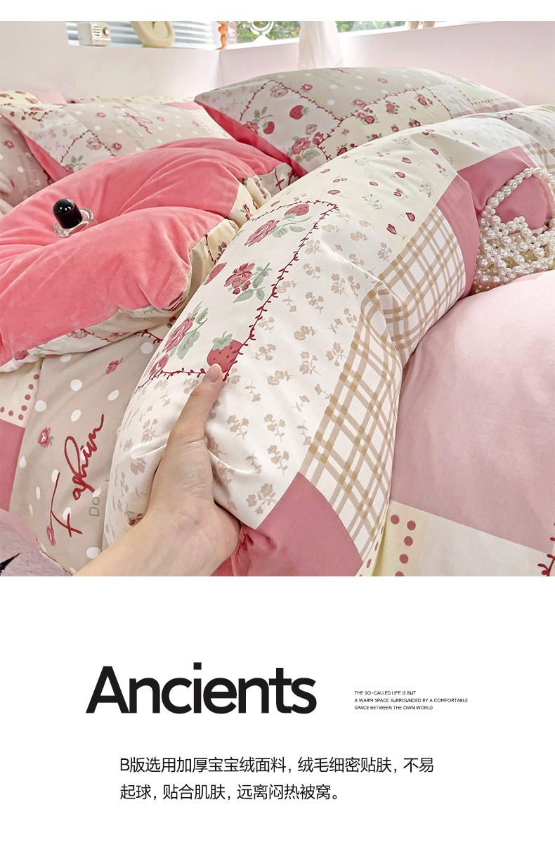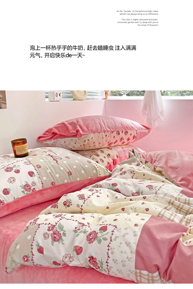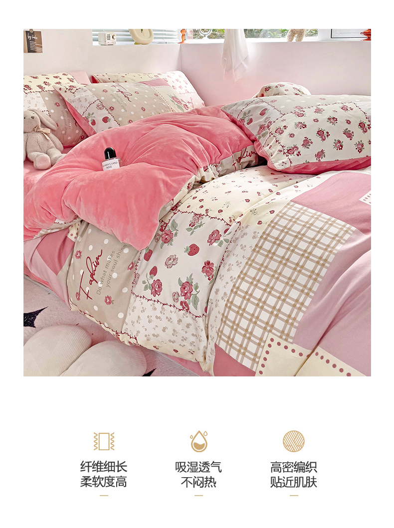 商品名称:盛馨家纺 2023新款棉加绒A版高支高密13372全棉加B版加厚宝宝绒牛奶绒床单床笠四件套 黛慕