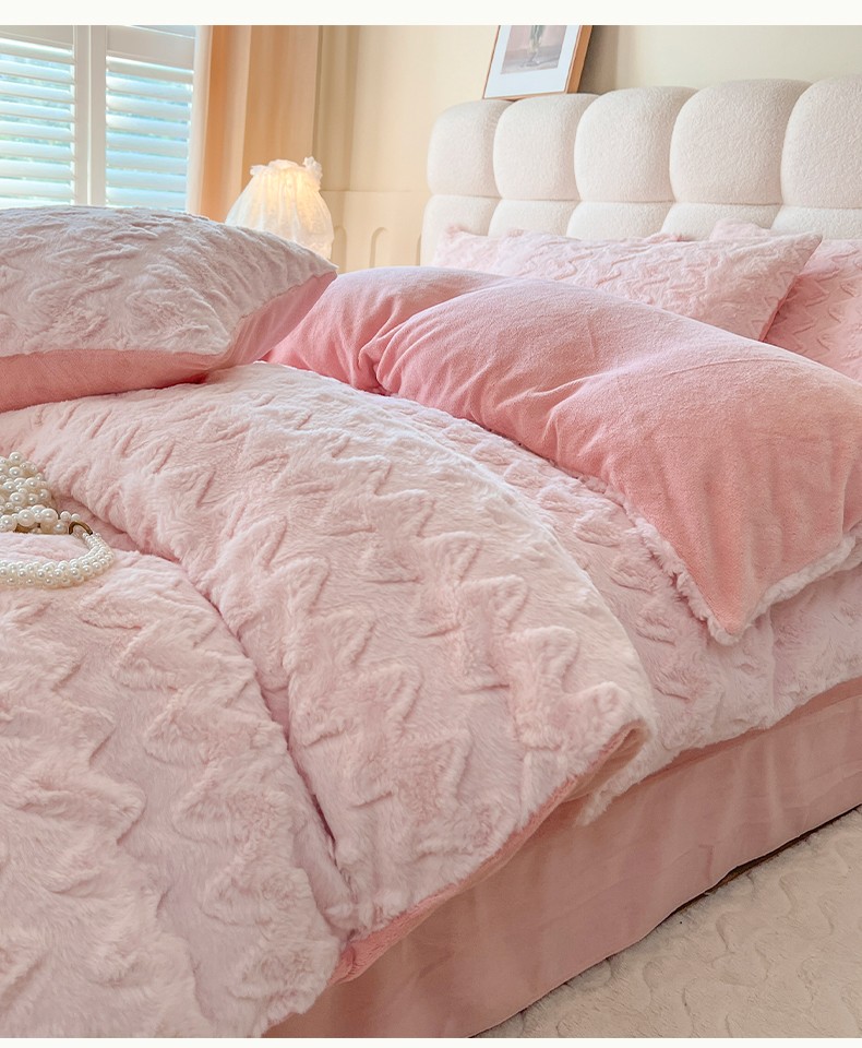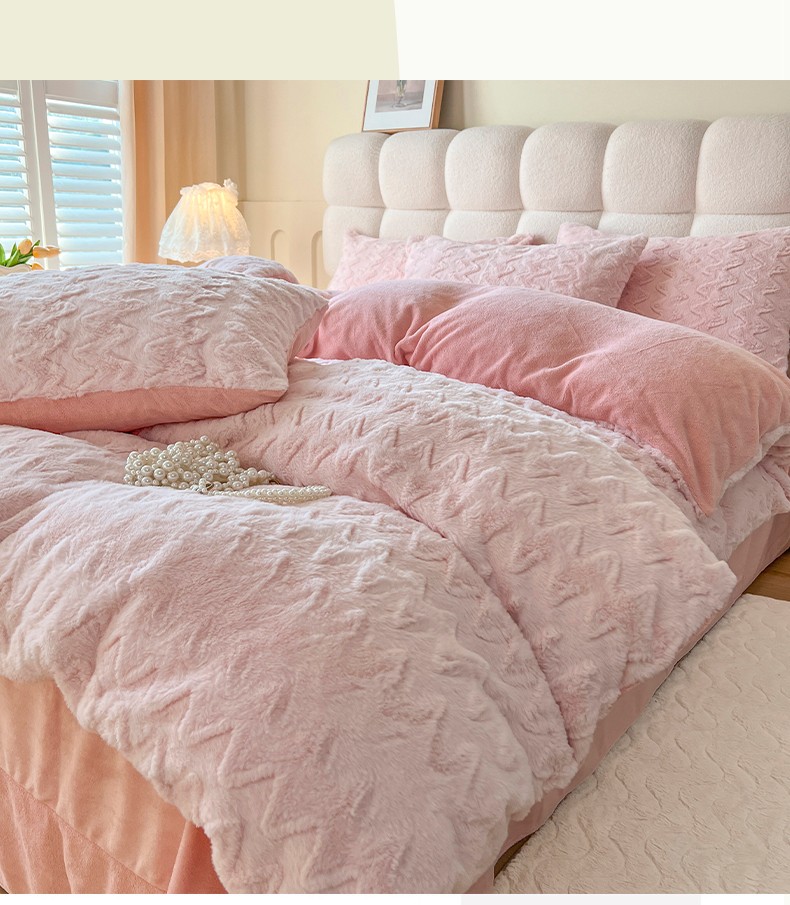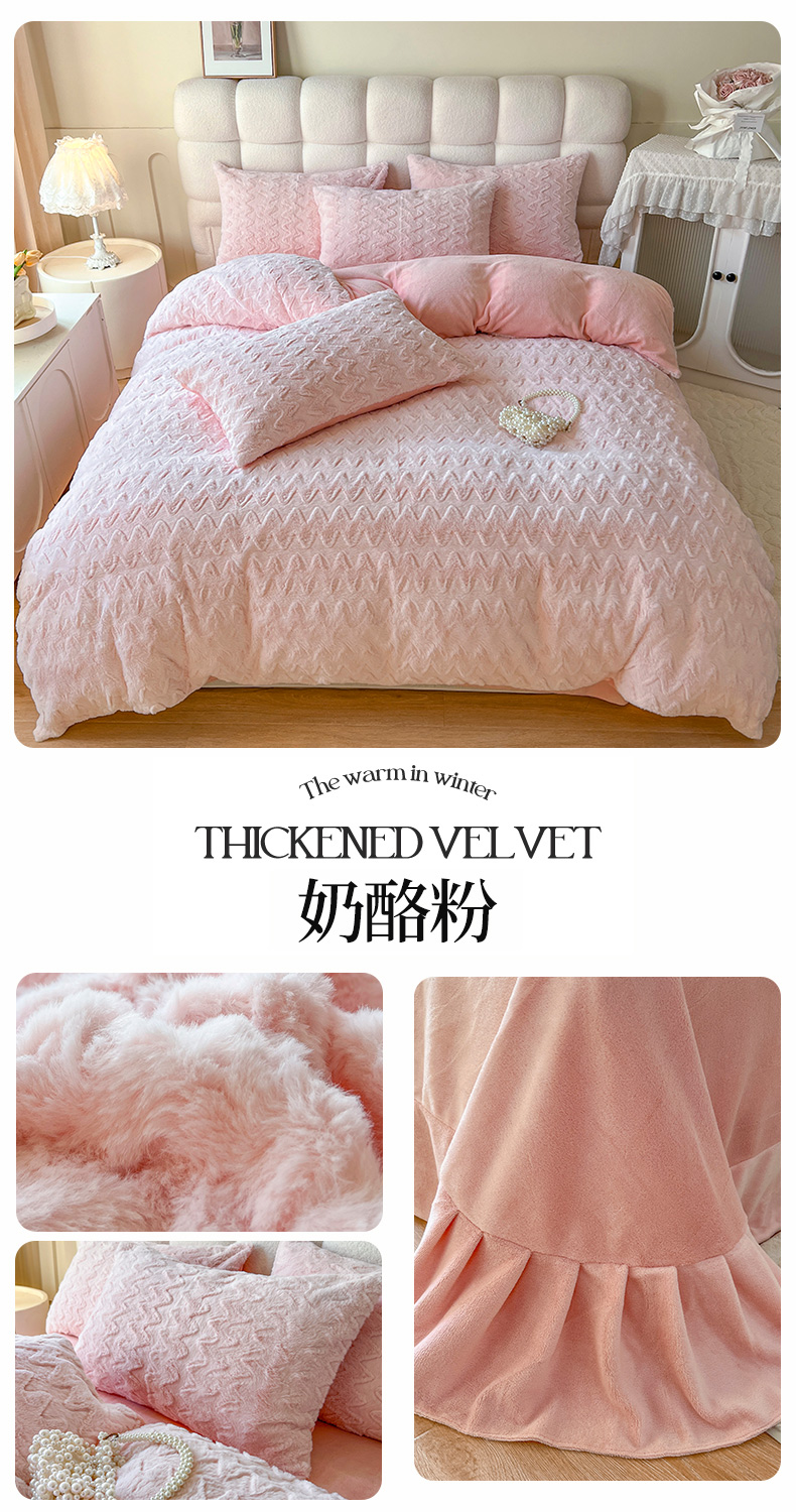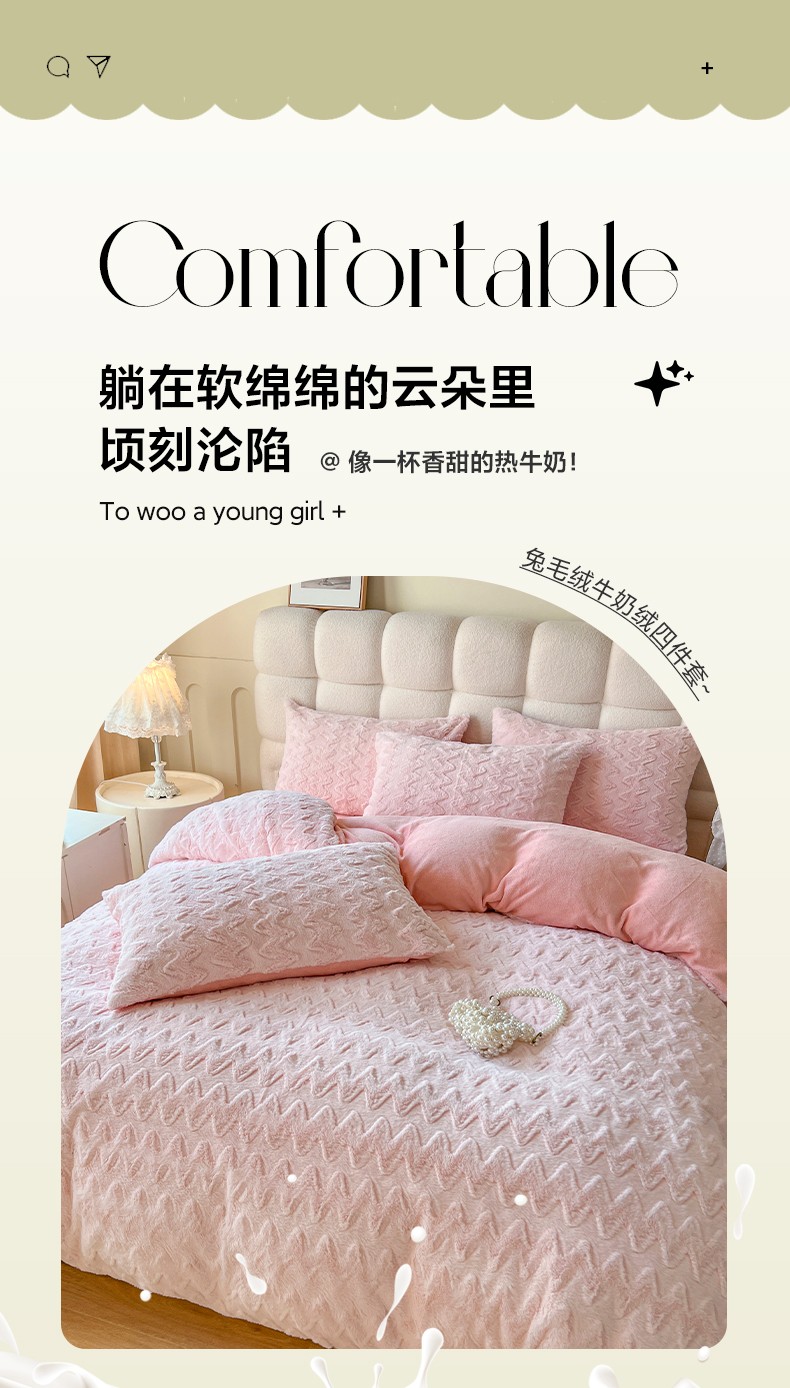 网红馆 2025新款A版兔毛绒B版素色牛奶绒四件套-归简 归简-奶酪粉