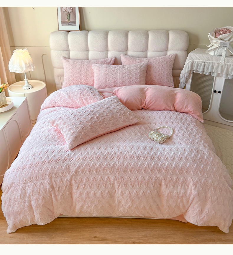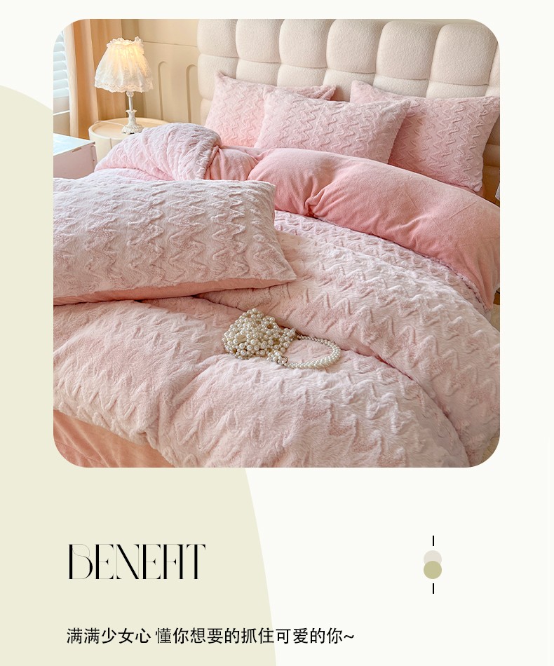 商品名称:网红馆 2025新款A版兔毛绒B版素色牛奶绒四件套-归简 归简-奶酪粉