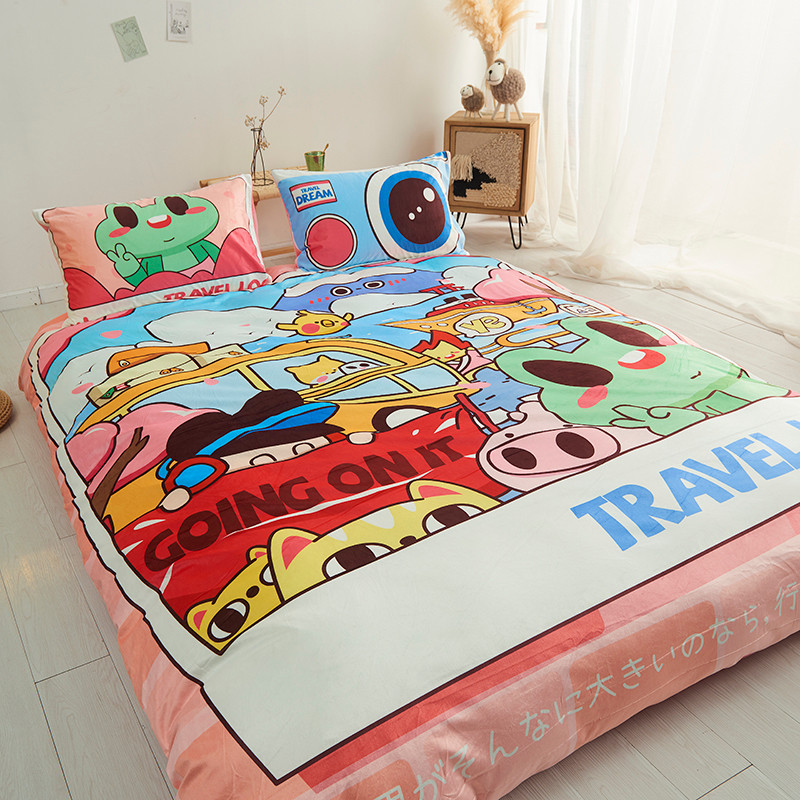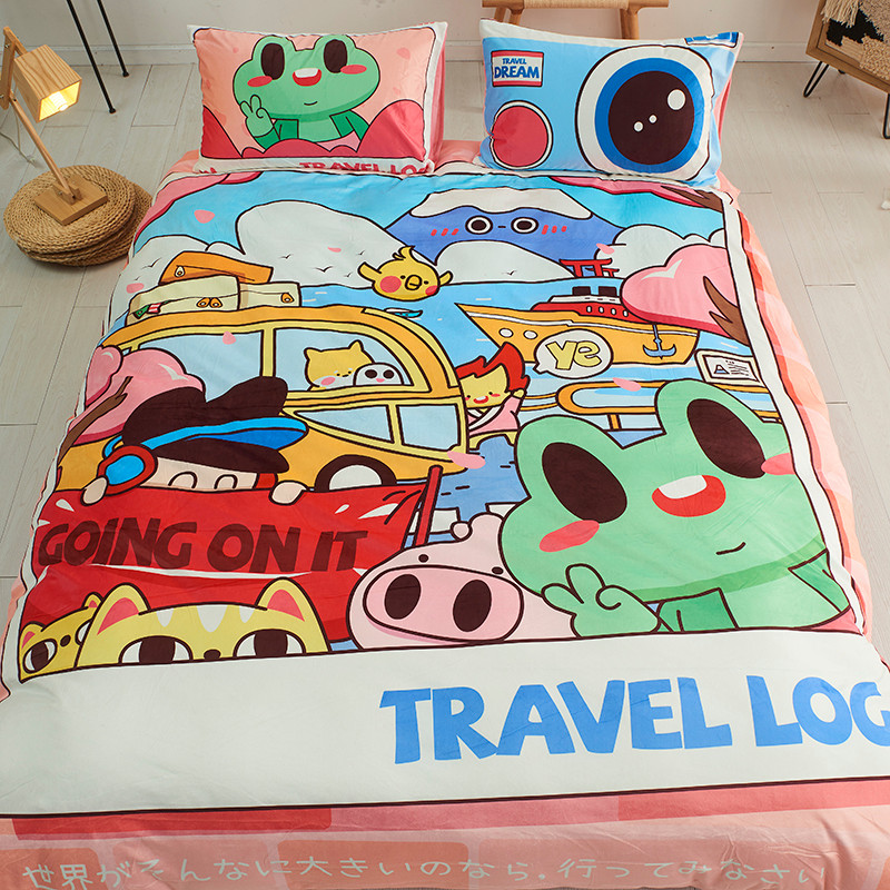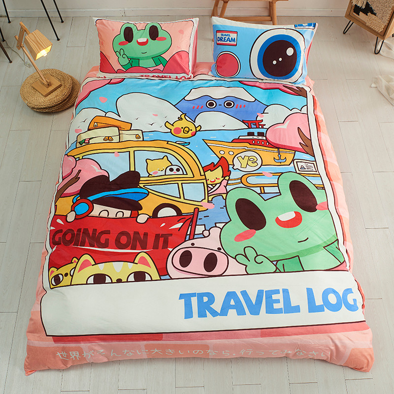 璞素 2023新款日系卡通涂鸦风格水晶绒数码印花四件套 旅游世界