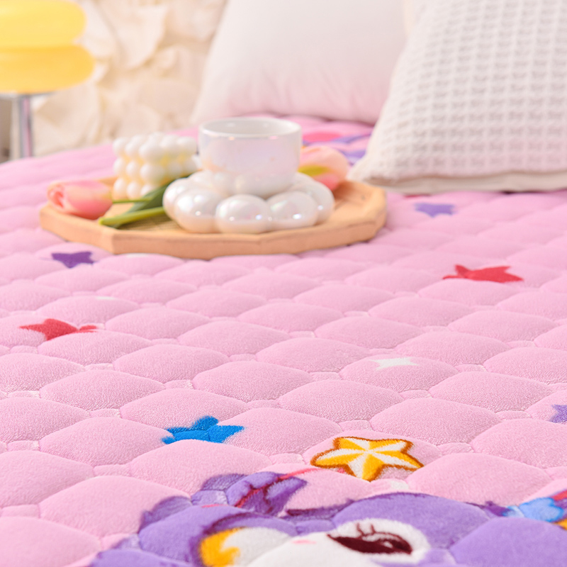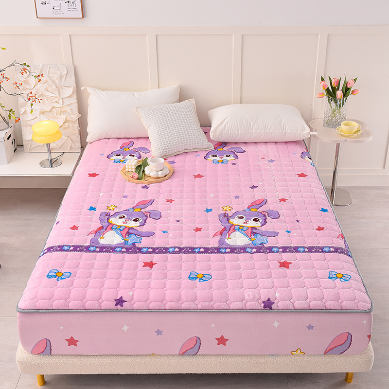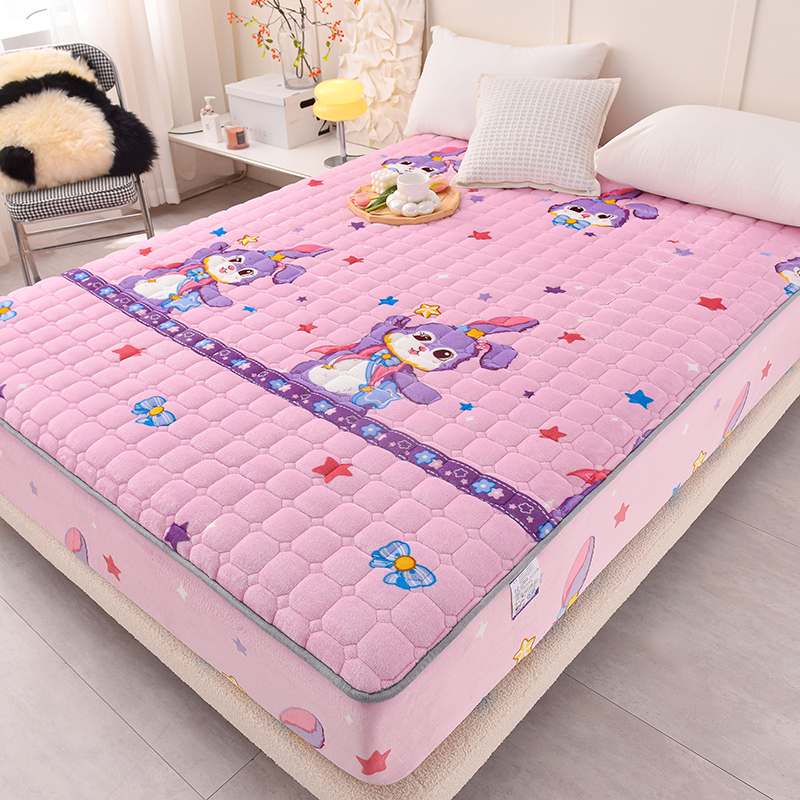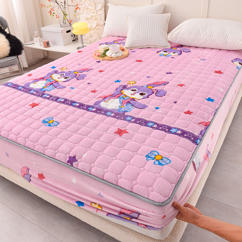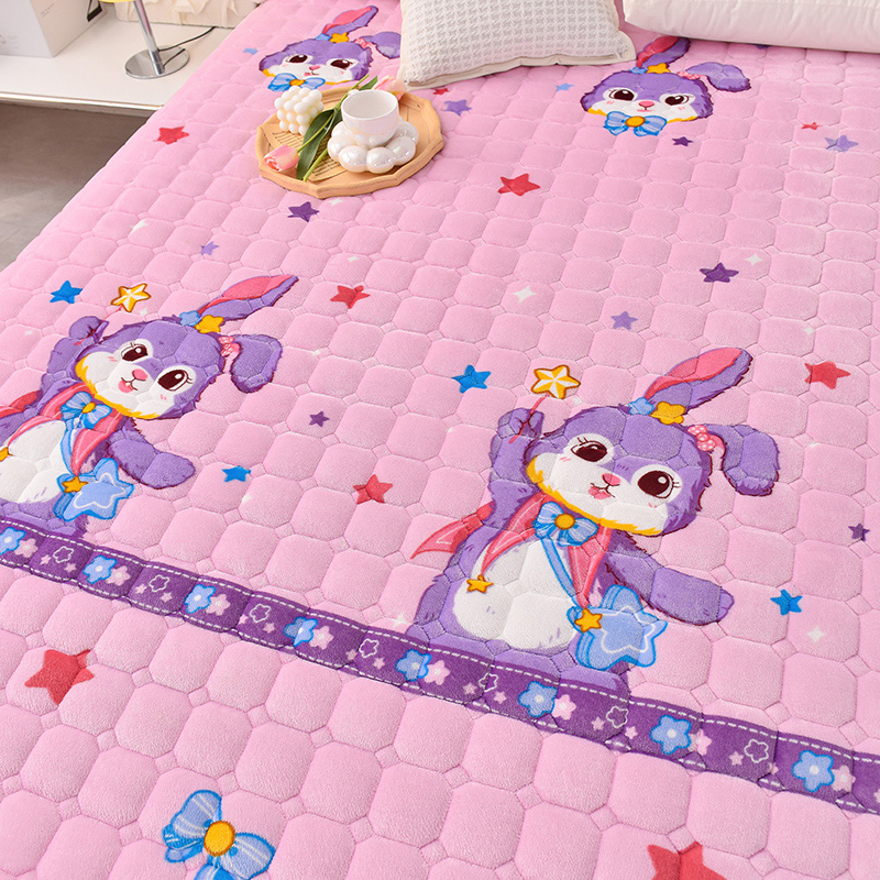 • 91家纺网 家纺一手货源 找家纺 爱上家居 2023新款印花牛奶绒保暖夹棉床笠床垫保护套 元气小兔
