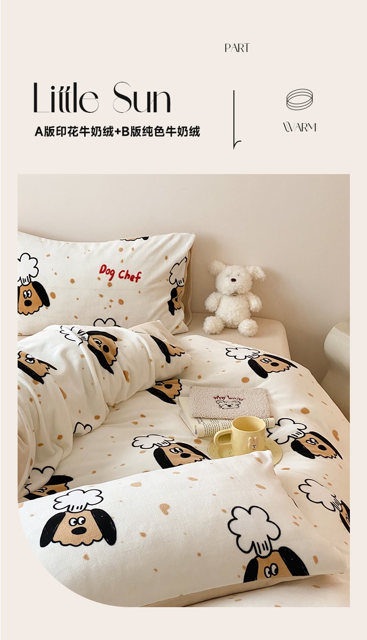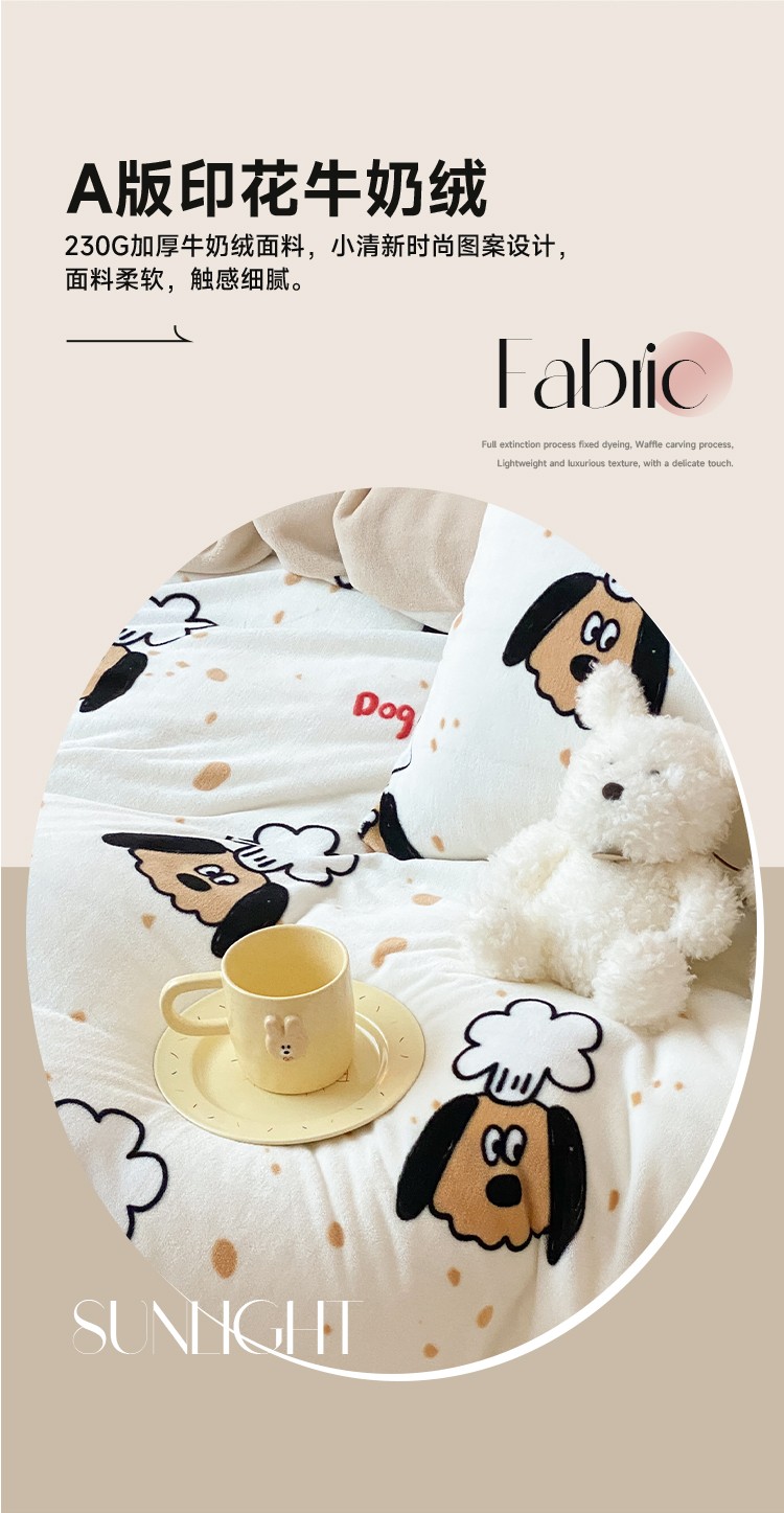 当前位置: 91家纺网 > 商品网购 > 床品套件 > 四件套 > 牛奶绒四件套 > 时光里 2023新款230g半消光印花牛奶绒四件套 卡通款-布丁狗